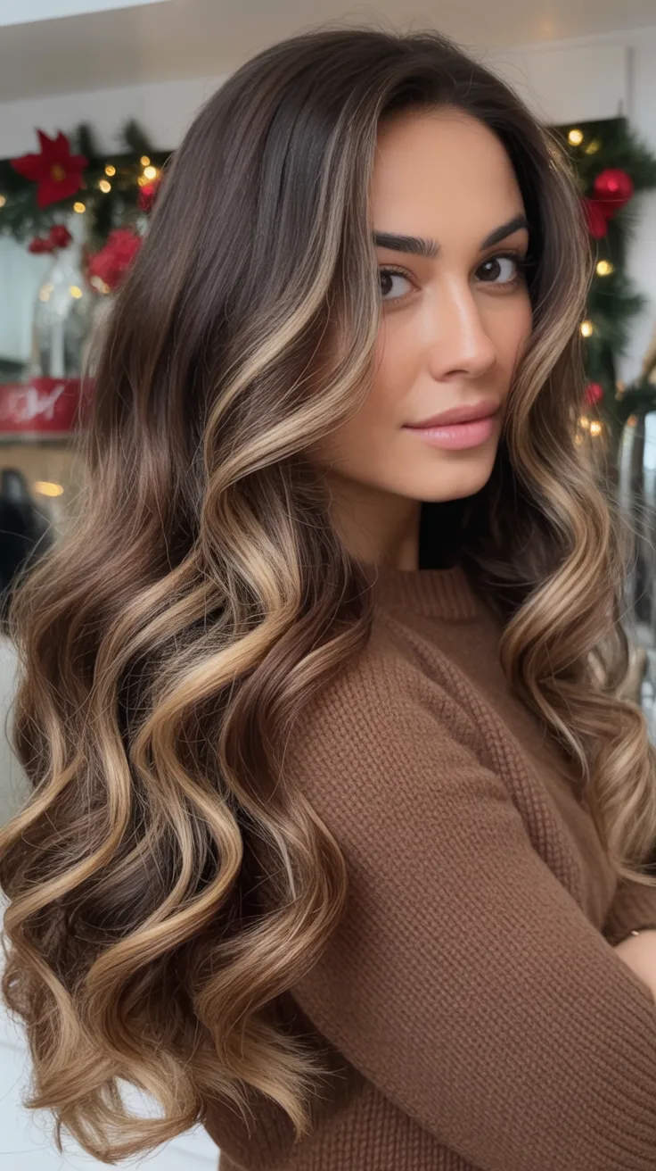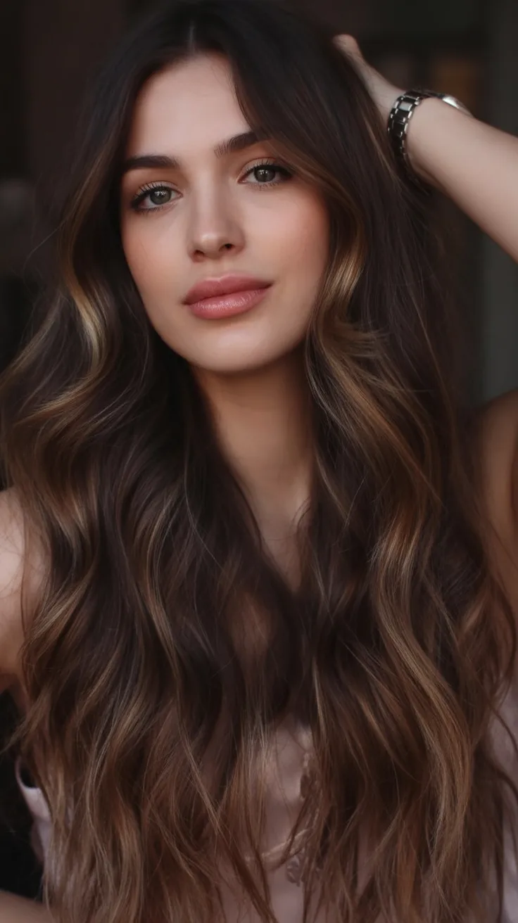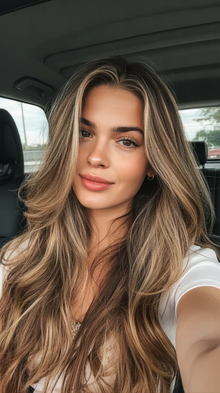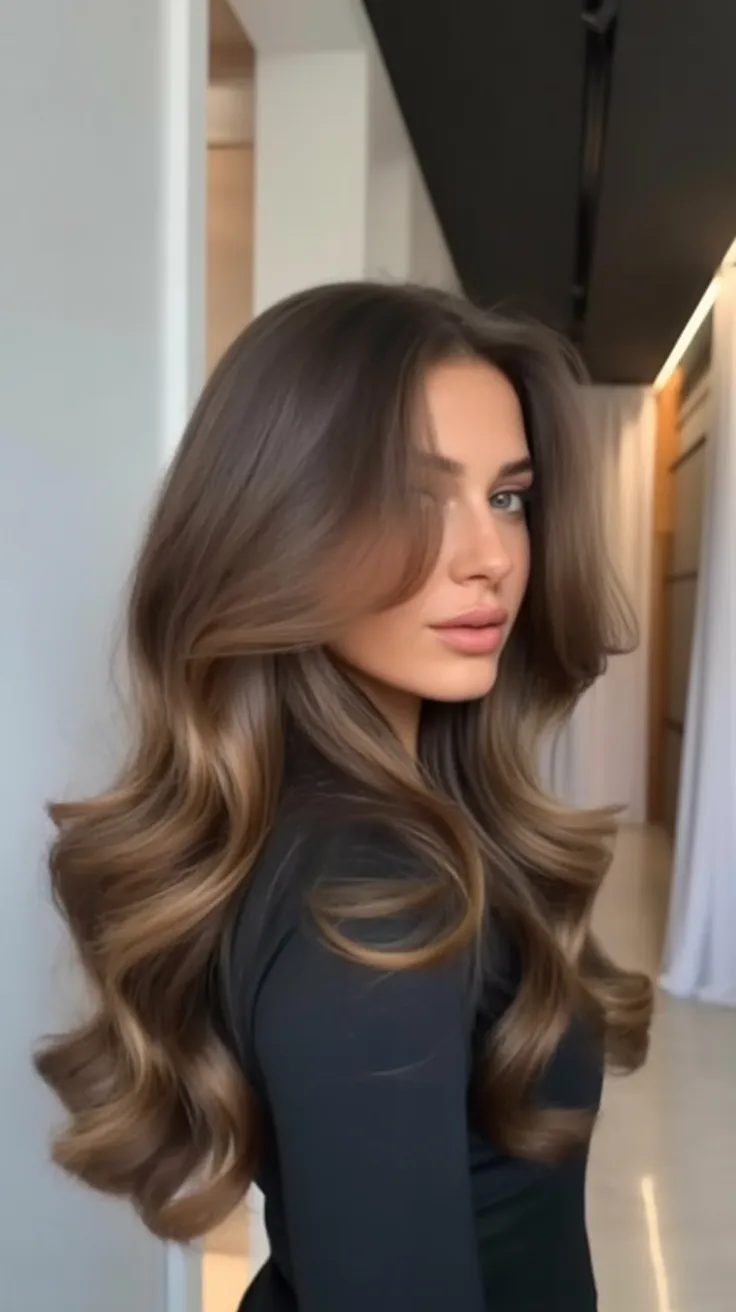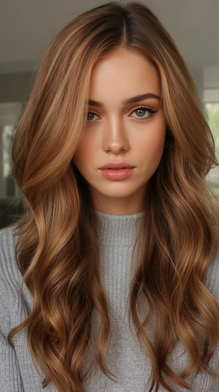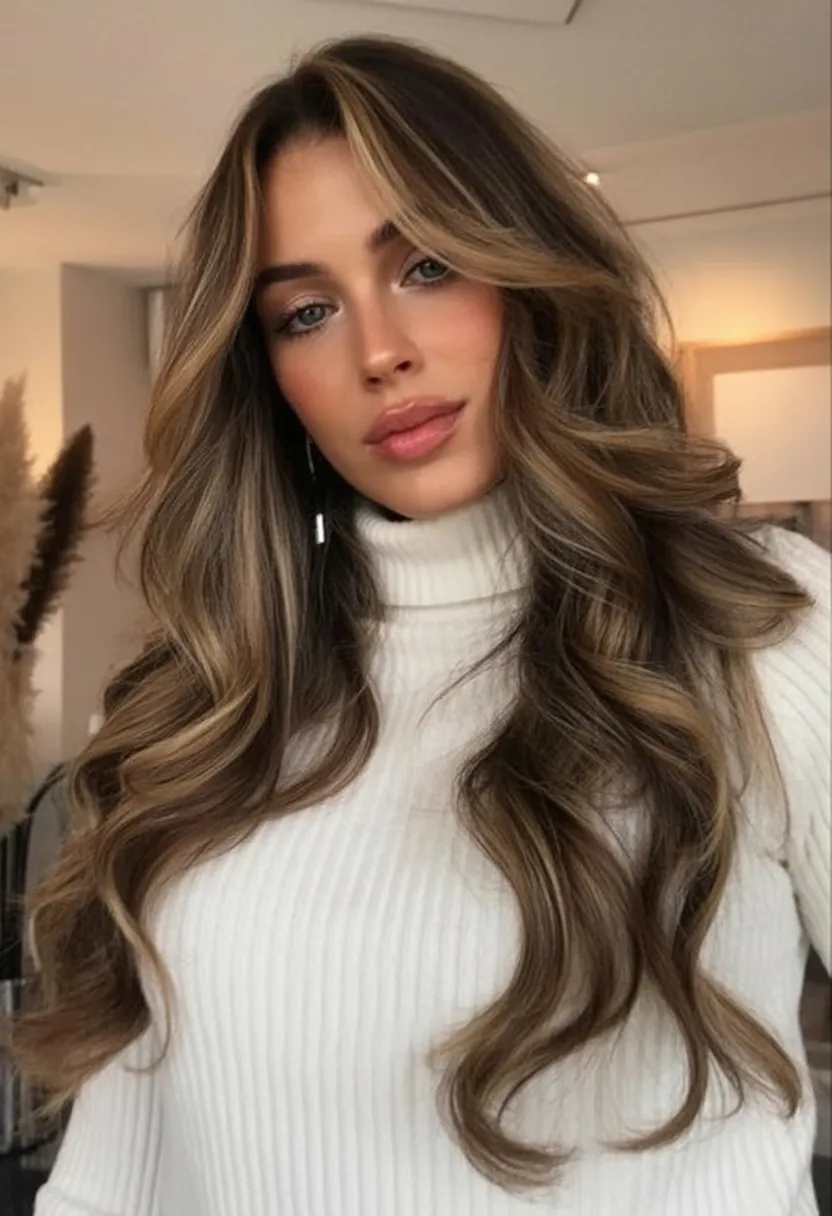 This look is perfect for women with medium to thick hair who love Long layers but don’t want high-maintenance contrast. Subtle Lowlights can enhance that dimensional finish, while a large curling wand brings out the movement. It’s a beautiful choice if you want Natural depth with a hint of glow.