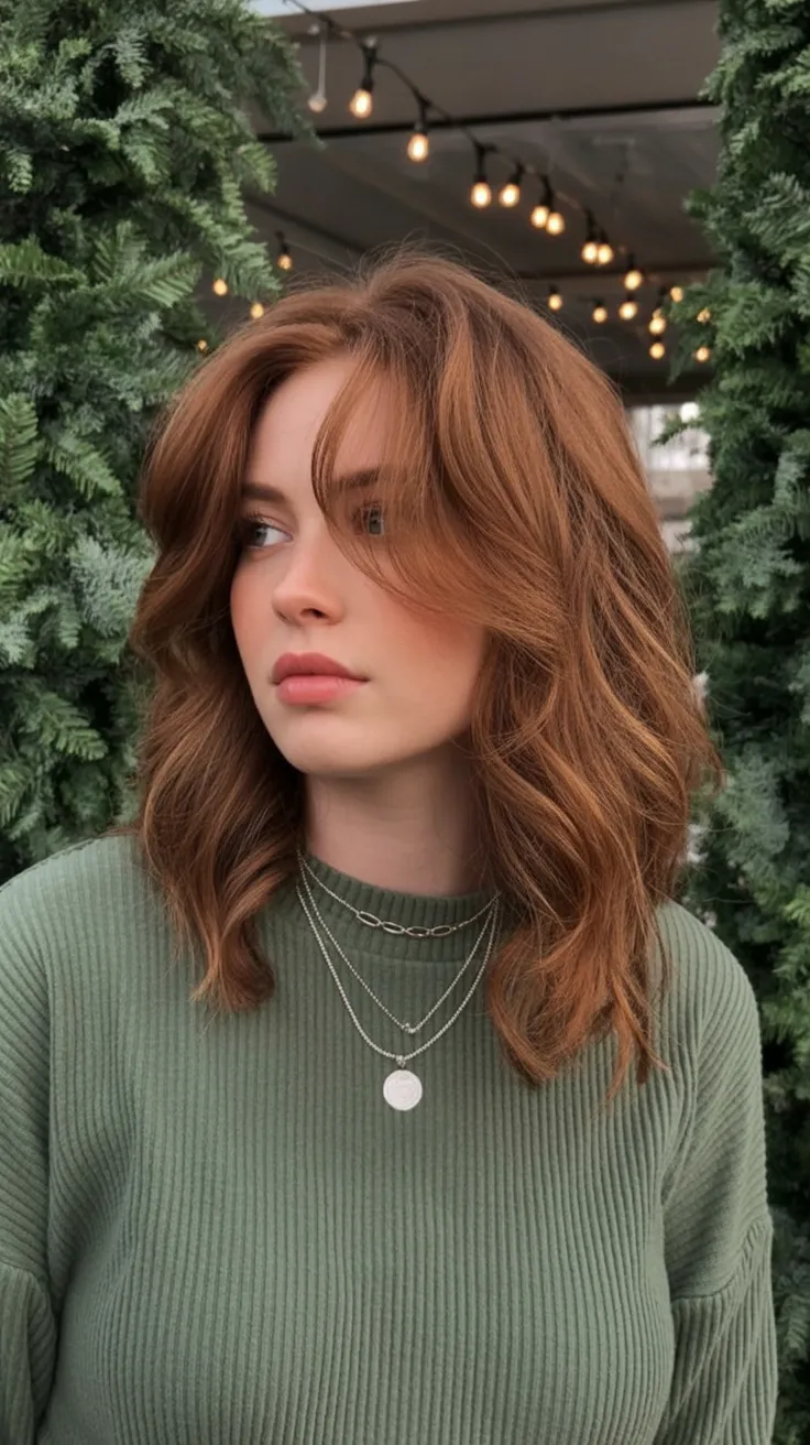If you love texture and don’t want to spend forever styling, this is a fantastic choice. It works beautifully on naturally wavy or slightly Curly hair can even flatter fine strands thanks to the layered lift. A light texturizing spray is all you need to enhance the shape, and subtle red Highlights can boost that warm glow without overwhelming the Natural base.