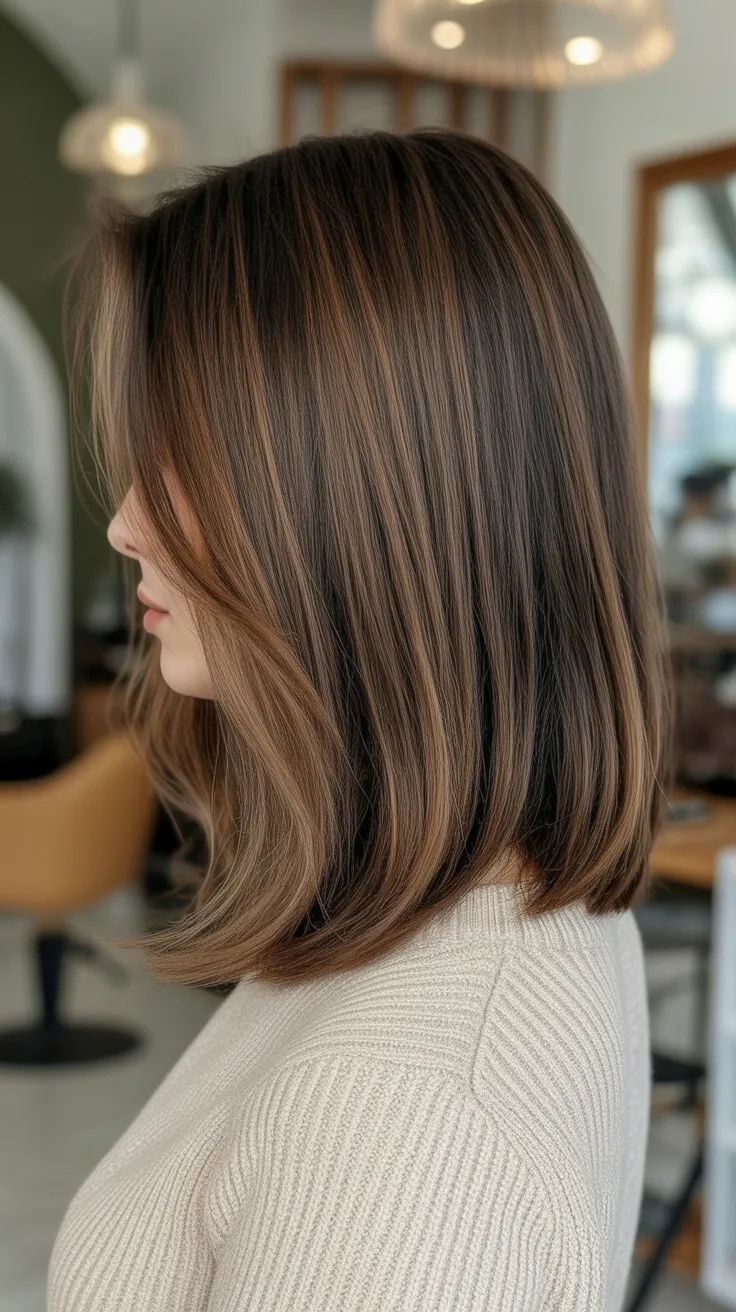 If you have medium to Long hair and want dimension without drastic change, this is one of those Color ideas that feels safe yet transformative. Ask for subtle Balayage with slightly Honey Toned pieces near the front. It flatters most face shapes and works beautifully for women who want softness around the jawline while keeping their Color rich and multidimensional.