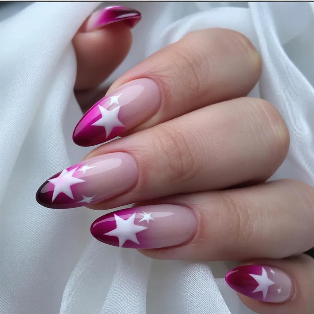 15. Bold Pink Star French Fade
