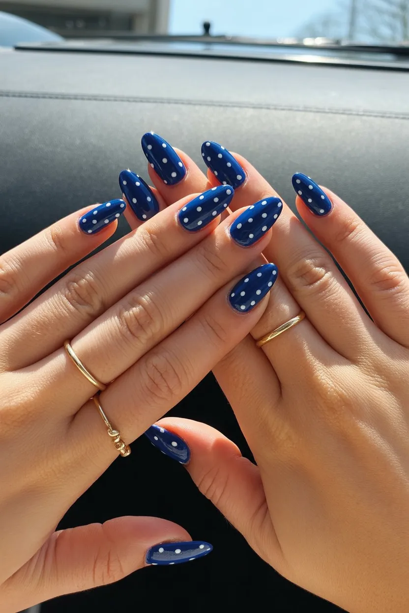 6. Navy Blue Polka Dot Almond