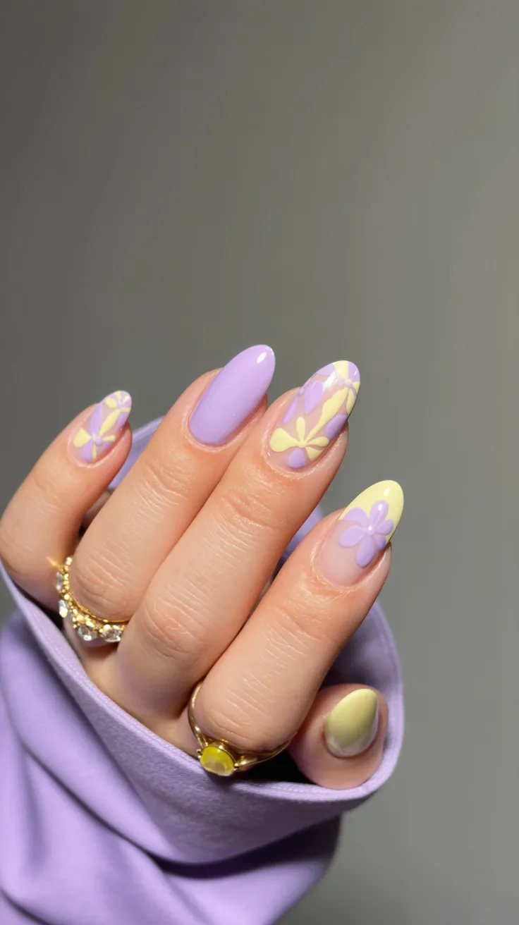 This pastel mix instantly feels like spring sunshine. Soft Purple and creamy Yellow blend together with delicate floral accents, creating a look that’s light, fresh, and full of optimism. It’s cheerful without being loud, and the color combination feels unexpectedly sophisticated.