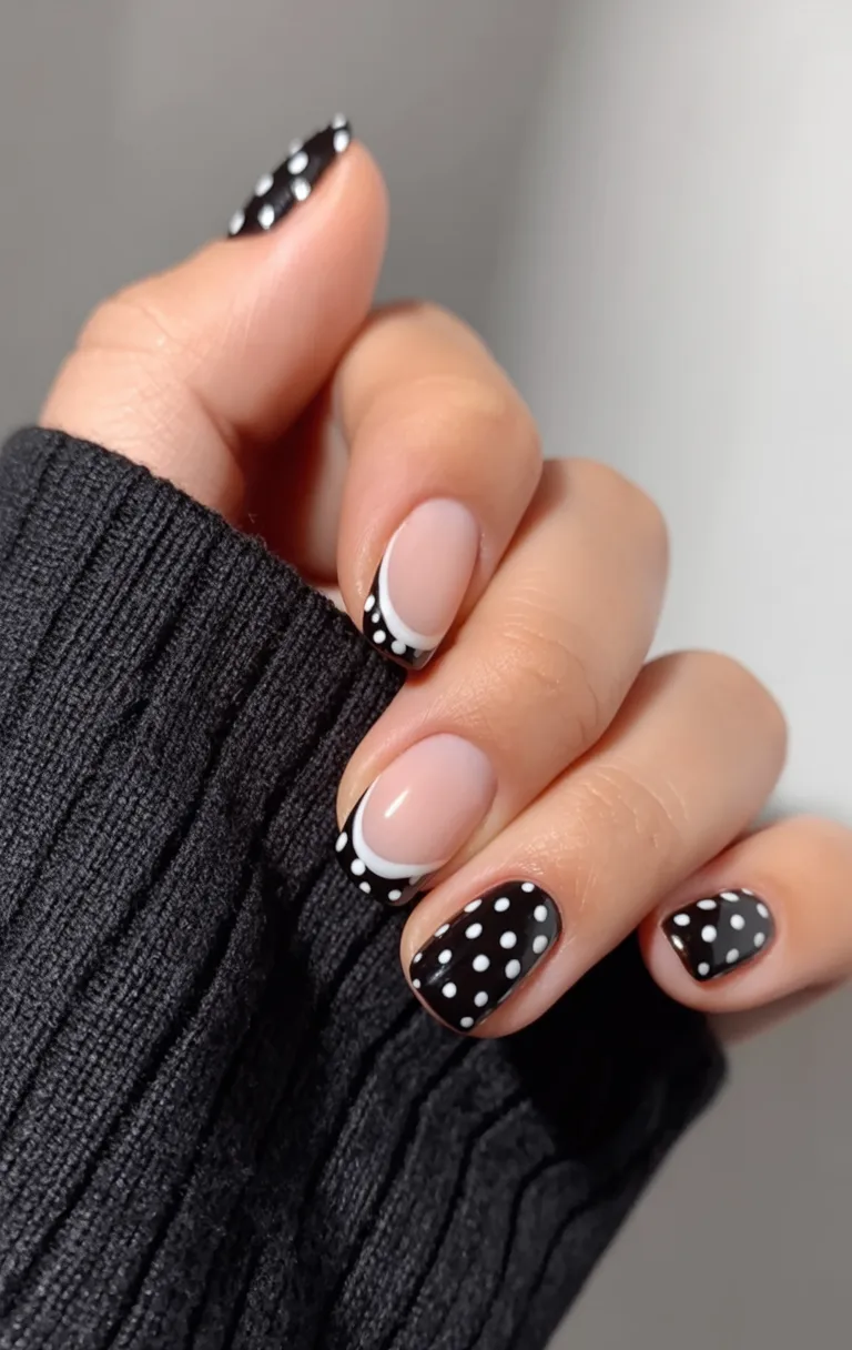 18. Black French with Polka Dot Accent