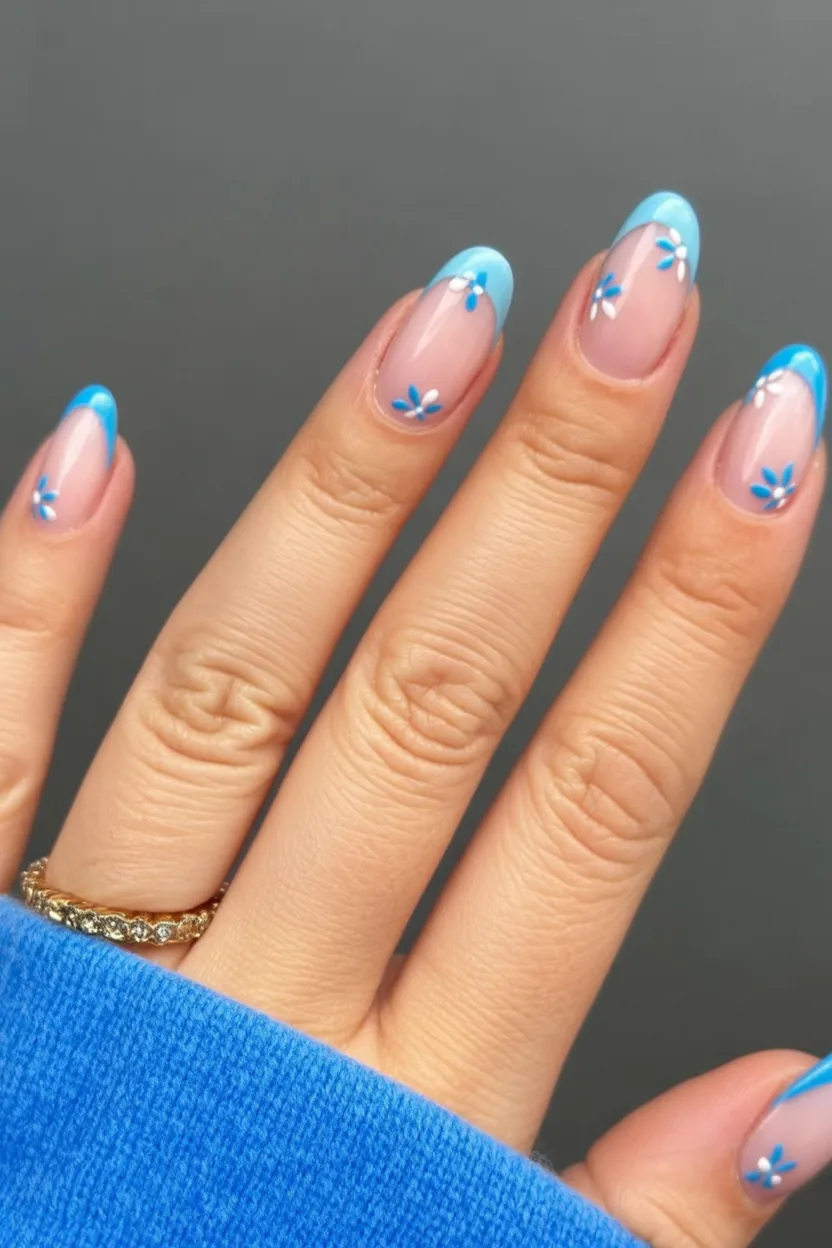 The gentle, soft touch of the blue French nails also has an elegance that is calming. With the floral art, the nails look nice while the blue keeps things light and lively. The look is easy and effortless and give the spring feeling elegant vibe that matches the slow spring mornings.