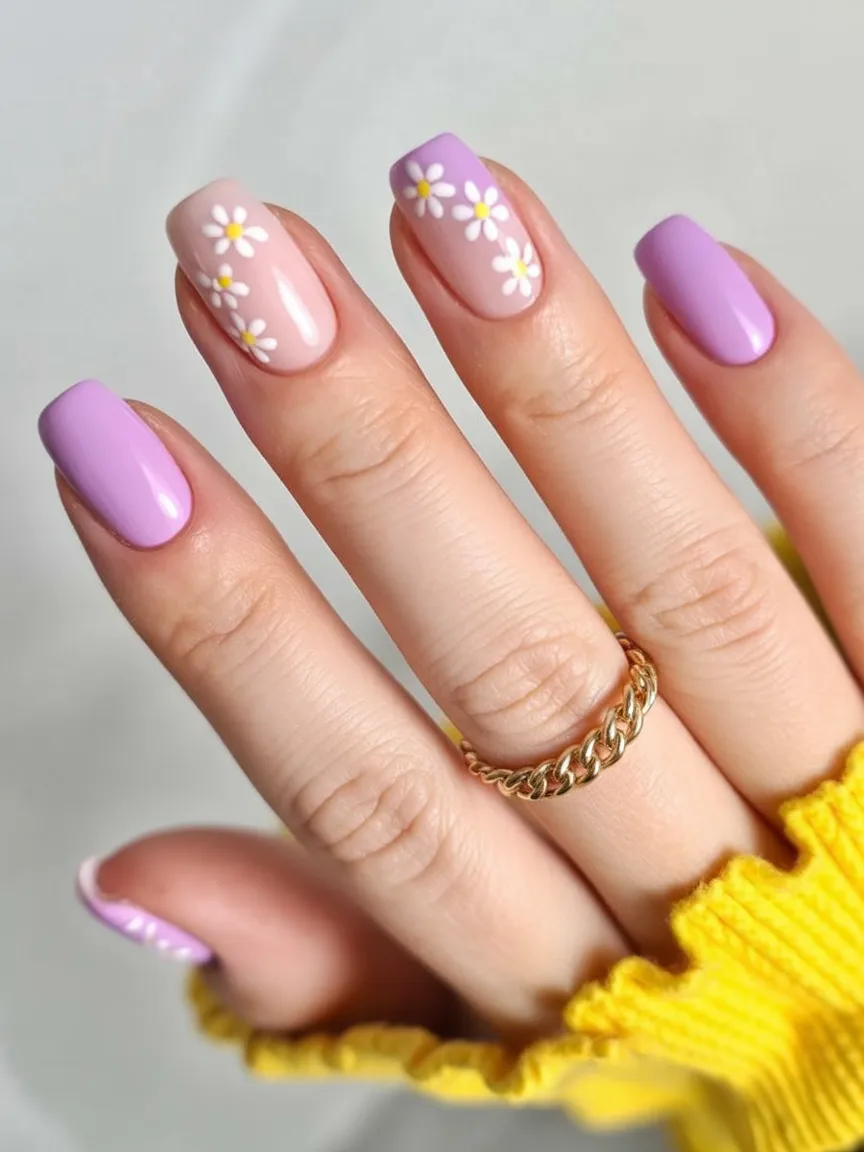 These nails feel gentle, cheerful, and full of spring optimism. The lavender base is soft and calming, while the daisy art brings a sweet, sunny touch that feels timeless. It’s the kind of manicure that feels friendly and approachable—pretty without trying too hard.
