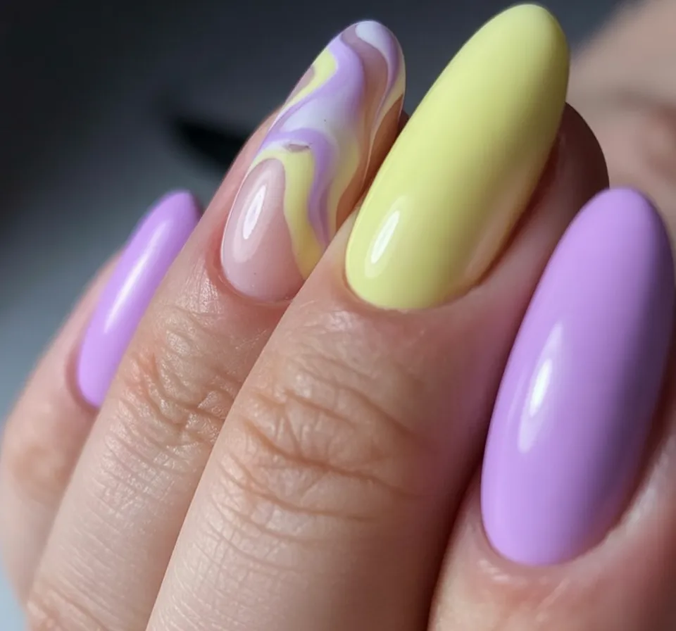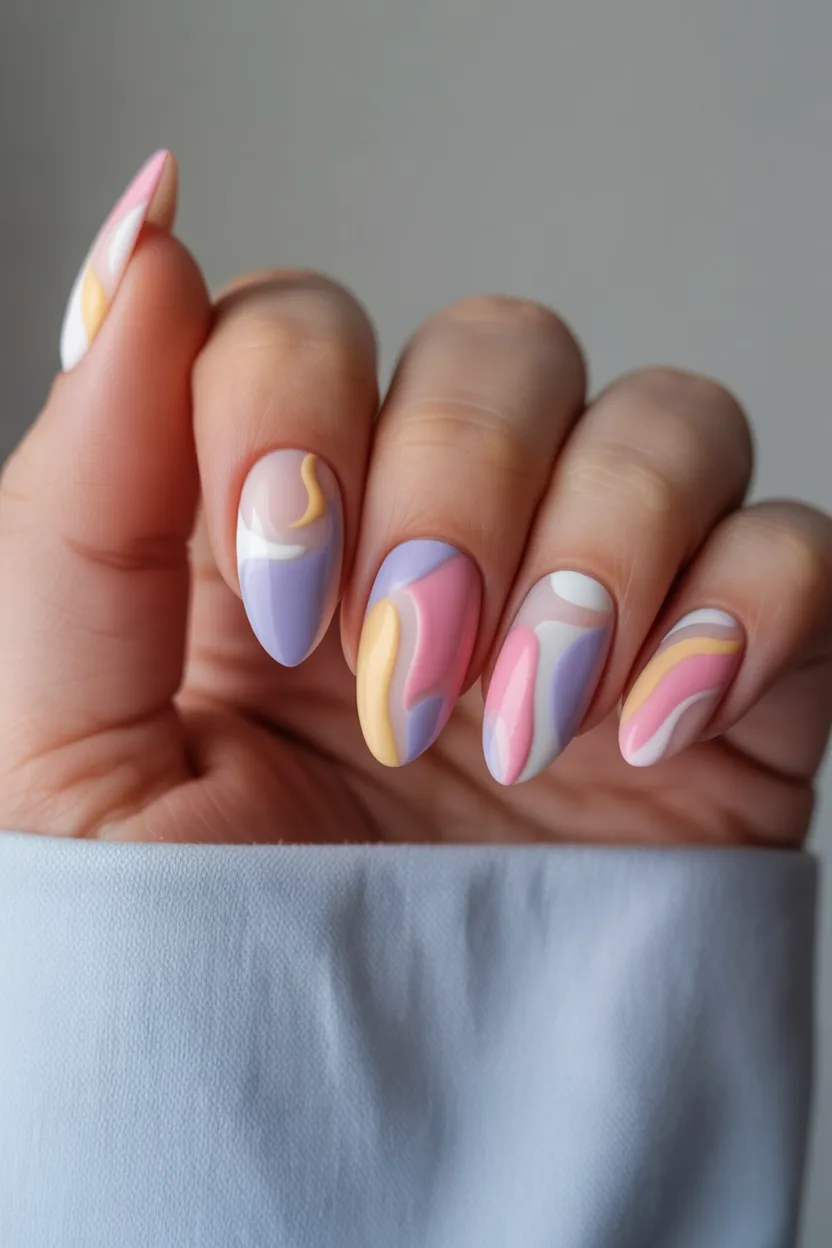 12. Soft Abstract Pastel Almond Nails