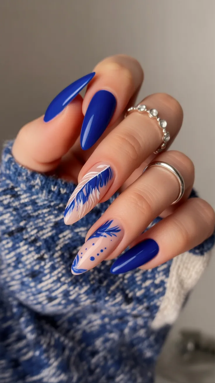 3. Bold Blue Abstract Almond Nails