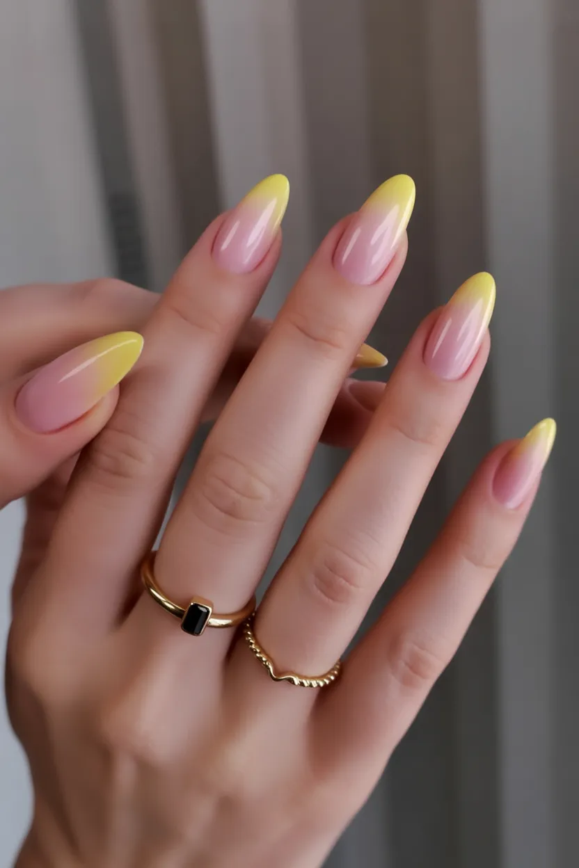 18. Pink and Yellow Ombre Almond Nails