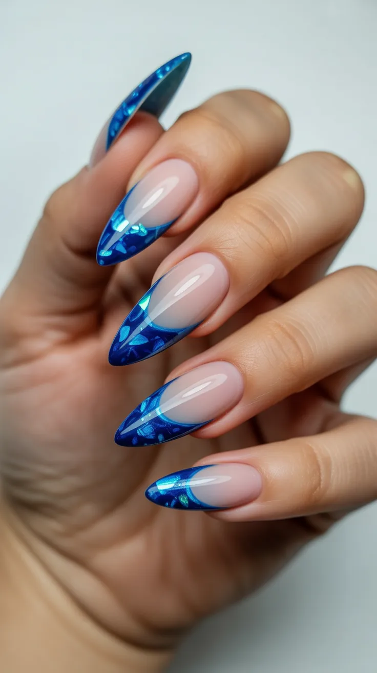 20. Deep Blue Abstract French Almond Nails