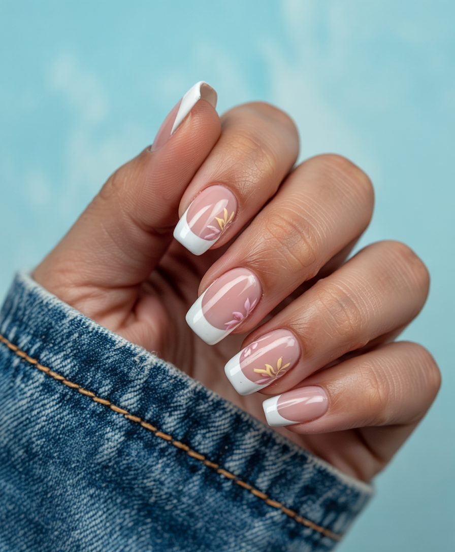 This manicure feels airy and refined, like a quiet spring morning. The classic French tip anchors the look, while the blue and pink leaf accents add a soft, artistic touch. It’s gentle, elegant, and incredibly wearable—perfect for everyday life with a hint of creativity.