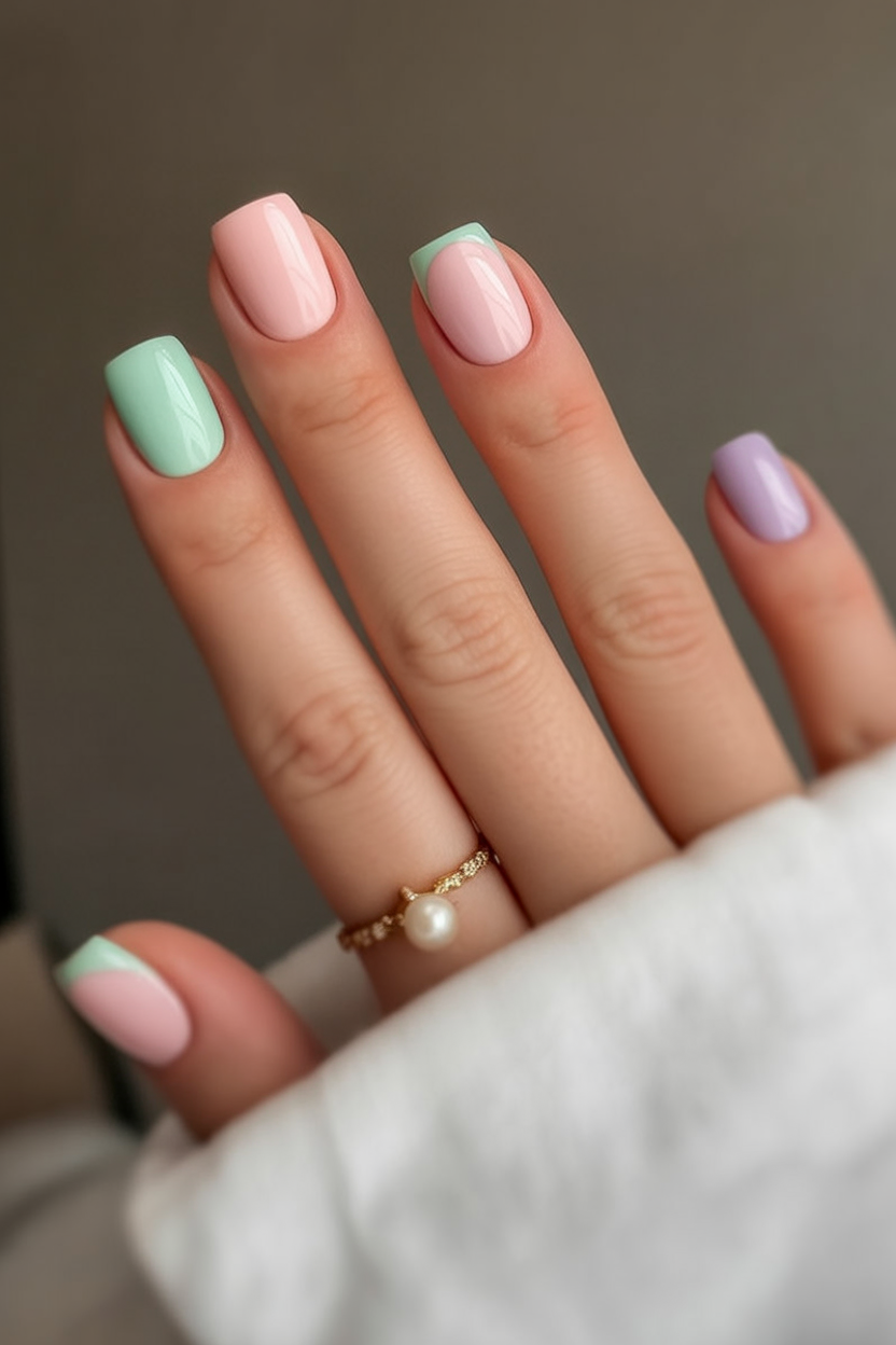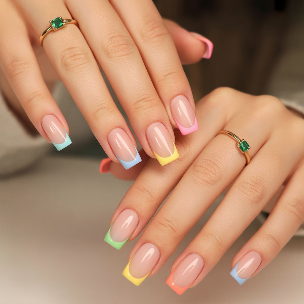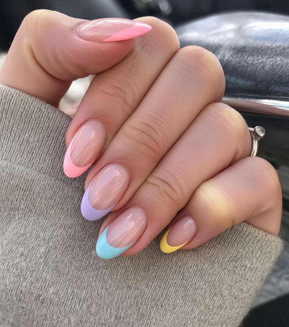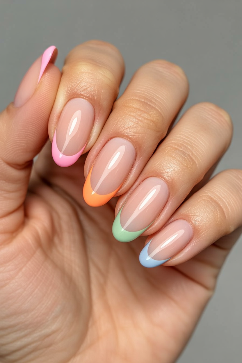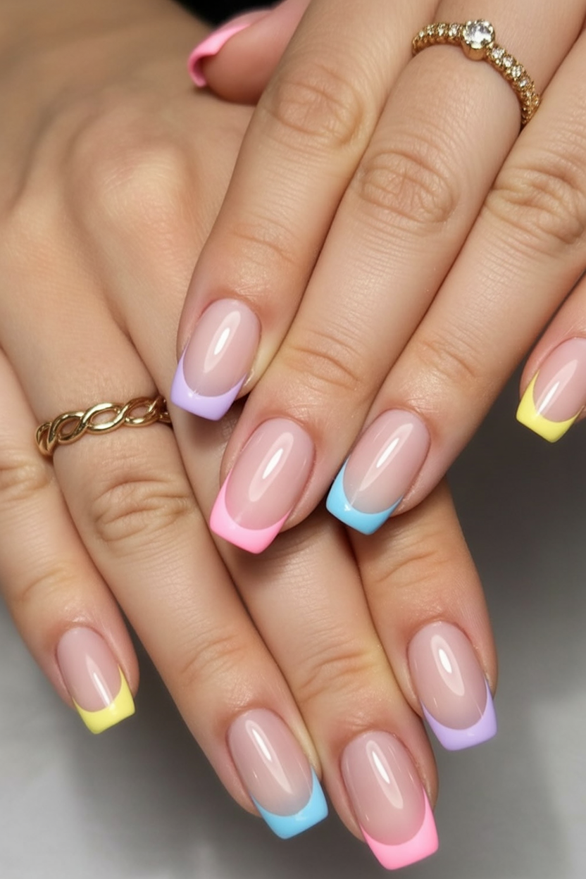 6. Multicolor Pastel French Tips for a Fresh Spring Mood
