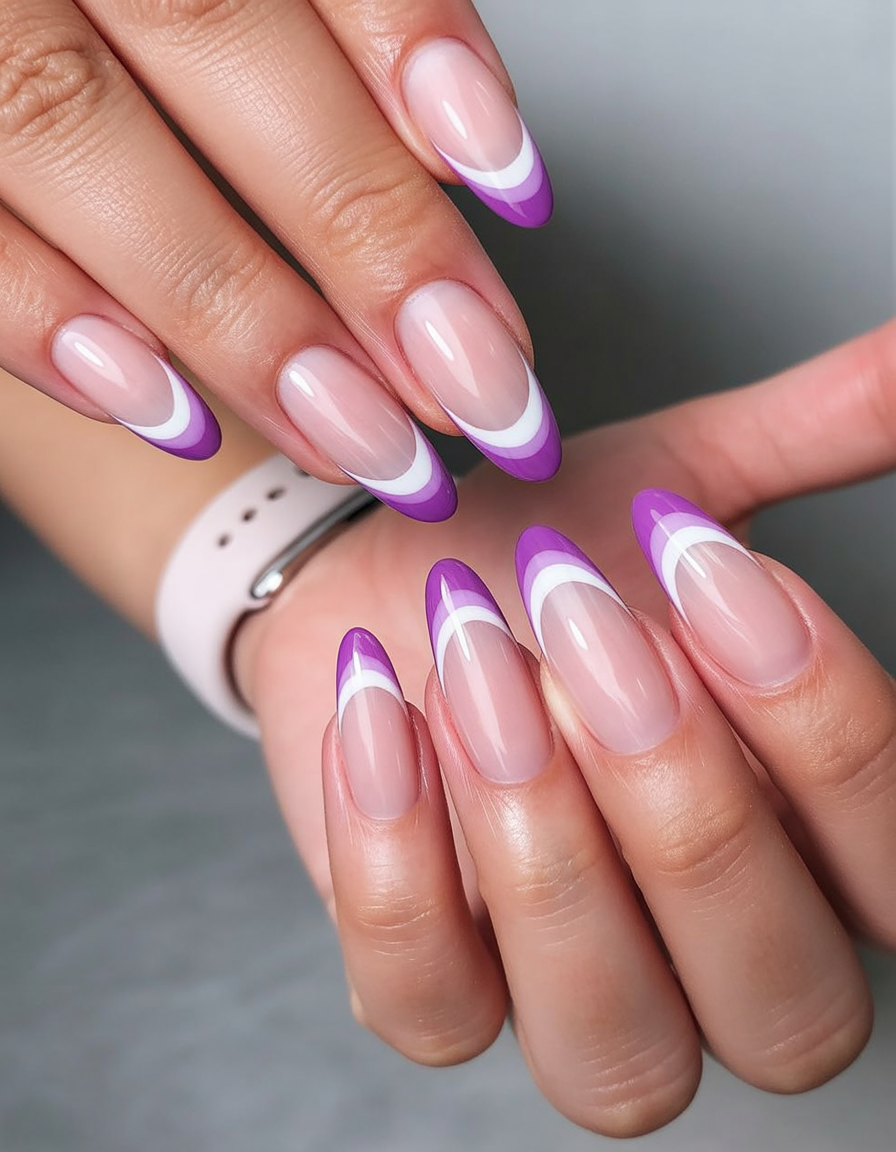 This manicure feels bold yet surprisingly refined. The layered purplesimple designs tips create a soft wave effect that instantly draws the eye without overwhelming the natural base. There’s a confident, fashion-forward energy here—likepurple someone who knows her style and isn’t afraid to show it in a subtle, thoughtful way. It feels artistic but still wearable, a perfect balance between creativity and elegance.