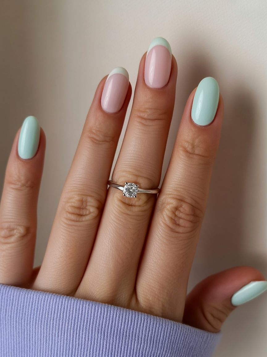 This design feels calm, gentle, and quietly stylish. The pastel tips are subtle, almost whispering color rather than announcing it. Mint, lavender, and soft pink blend beautifully with the natural base, giving the nails a clean, balanced look. It’s the kind of manicure that feels comforting and polished, perfect for days when you want simplicity with a hint of charm.
