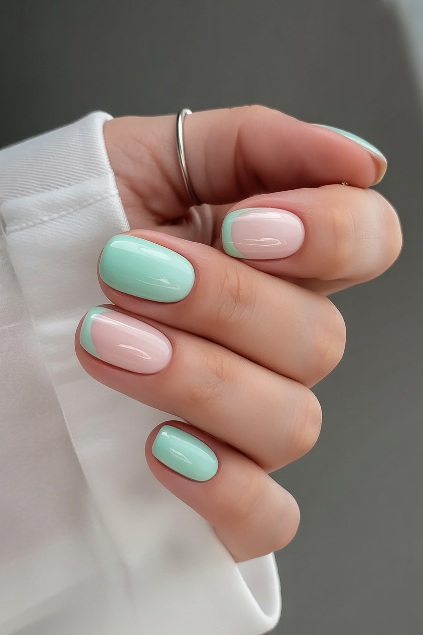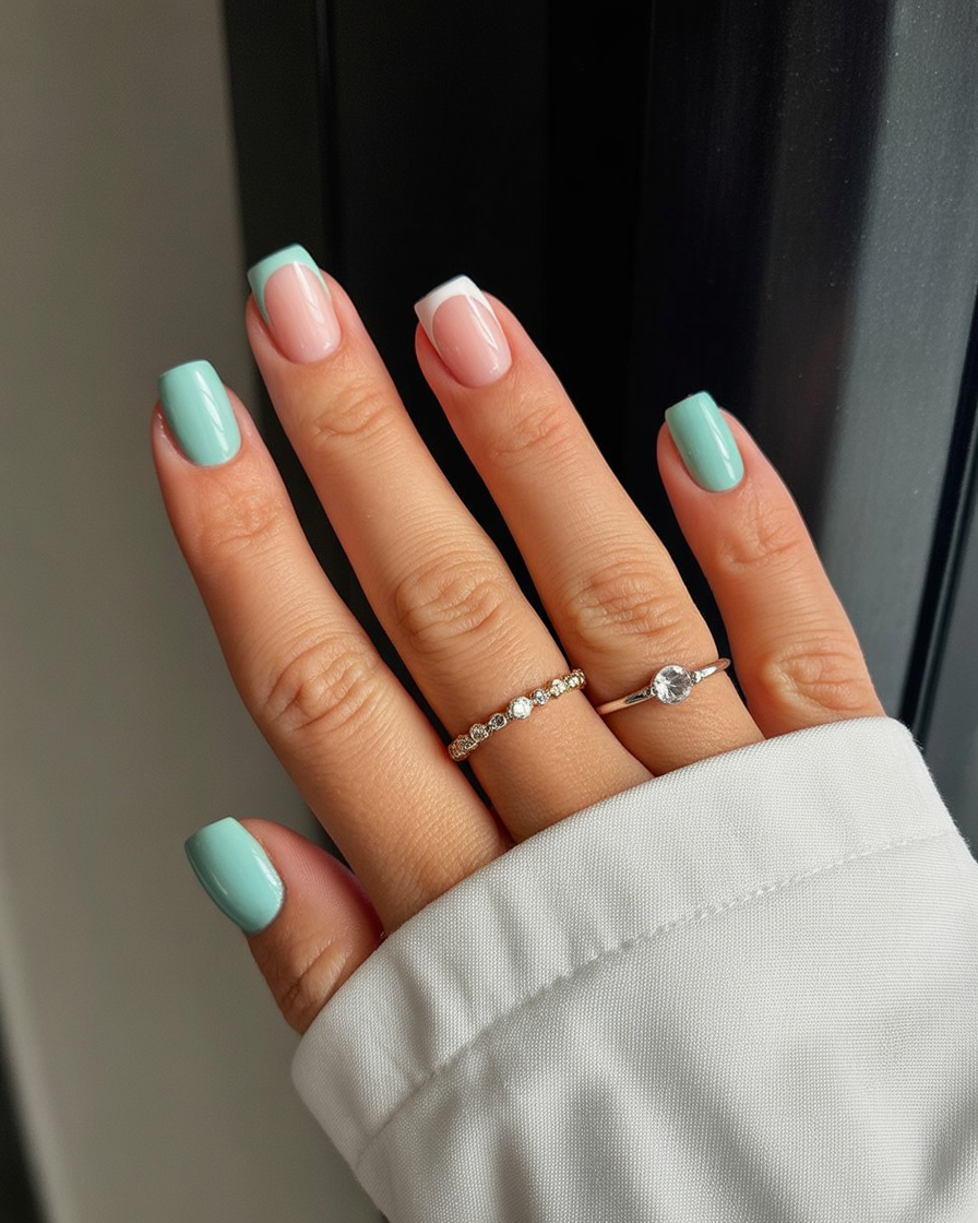 21. Fresh Mint French Tips with a Clean Modern Feel