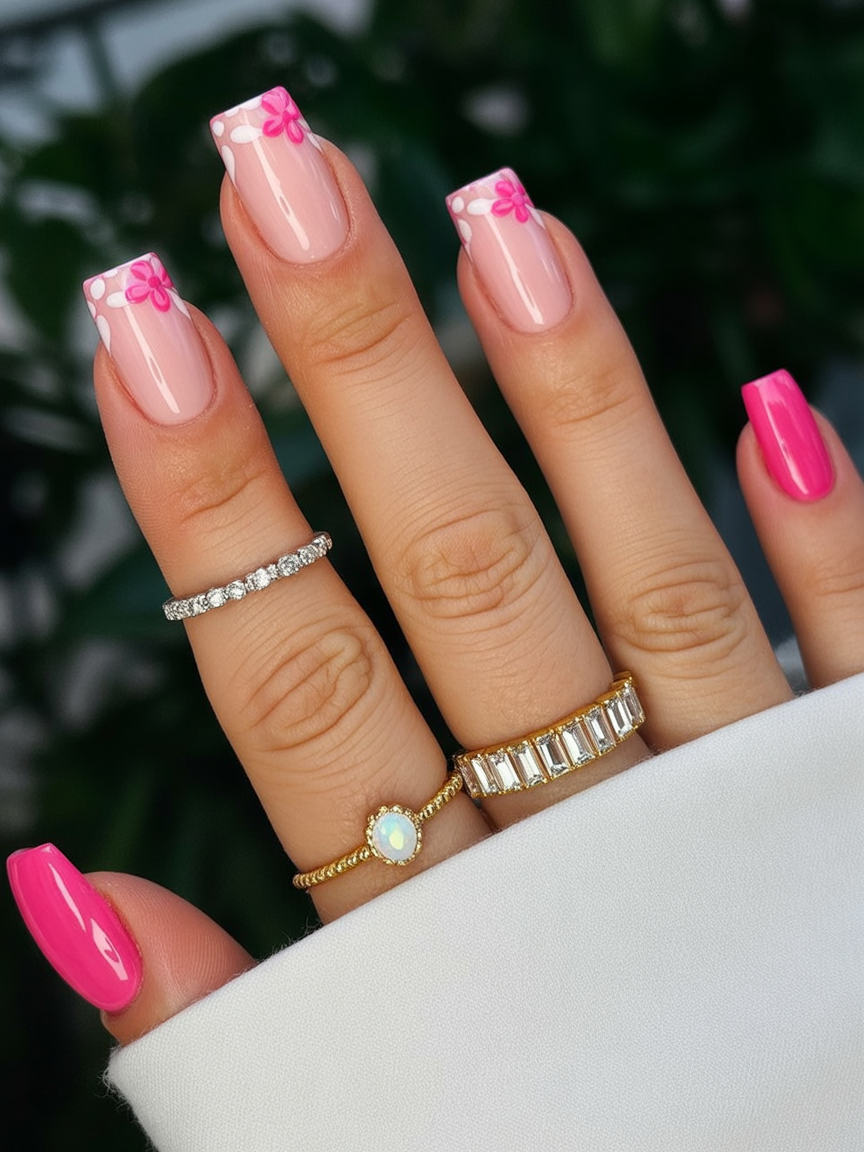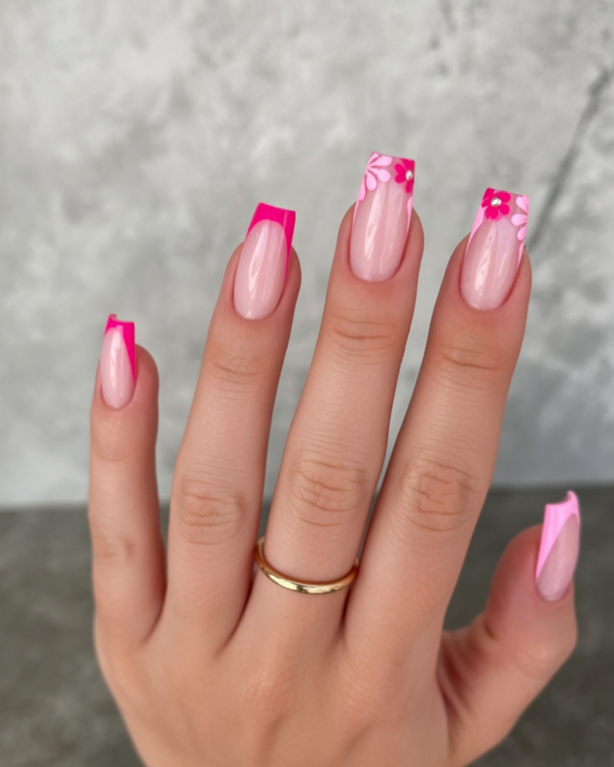 This look feels like a quiet celebration of spring—gentle, feminine, and reassuringly classic. The French tip gets a romantic update with tiny floral accents, while the pink base keeps everything soft and elegant. It’s the kind of manicure that feels appropriate everywhere, from brunch to a special family event.