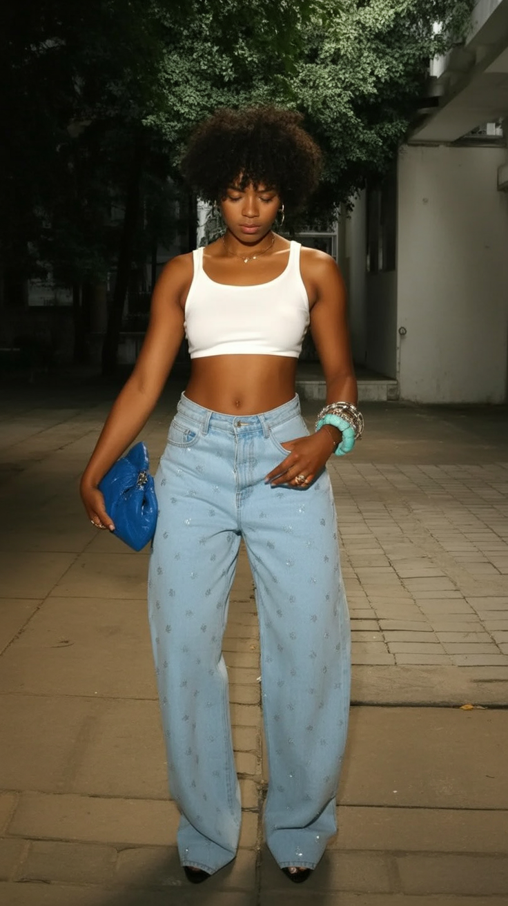 6. Cropped Tank and Wide Jeans: Cool Balance