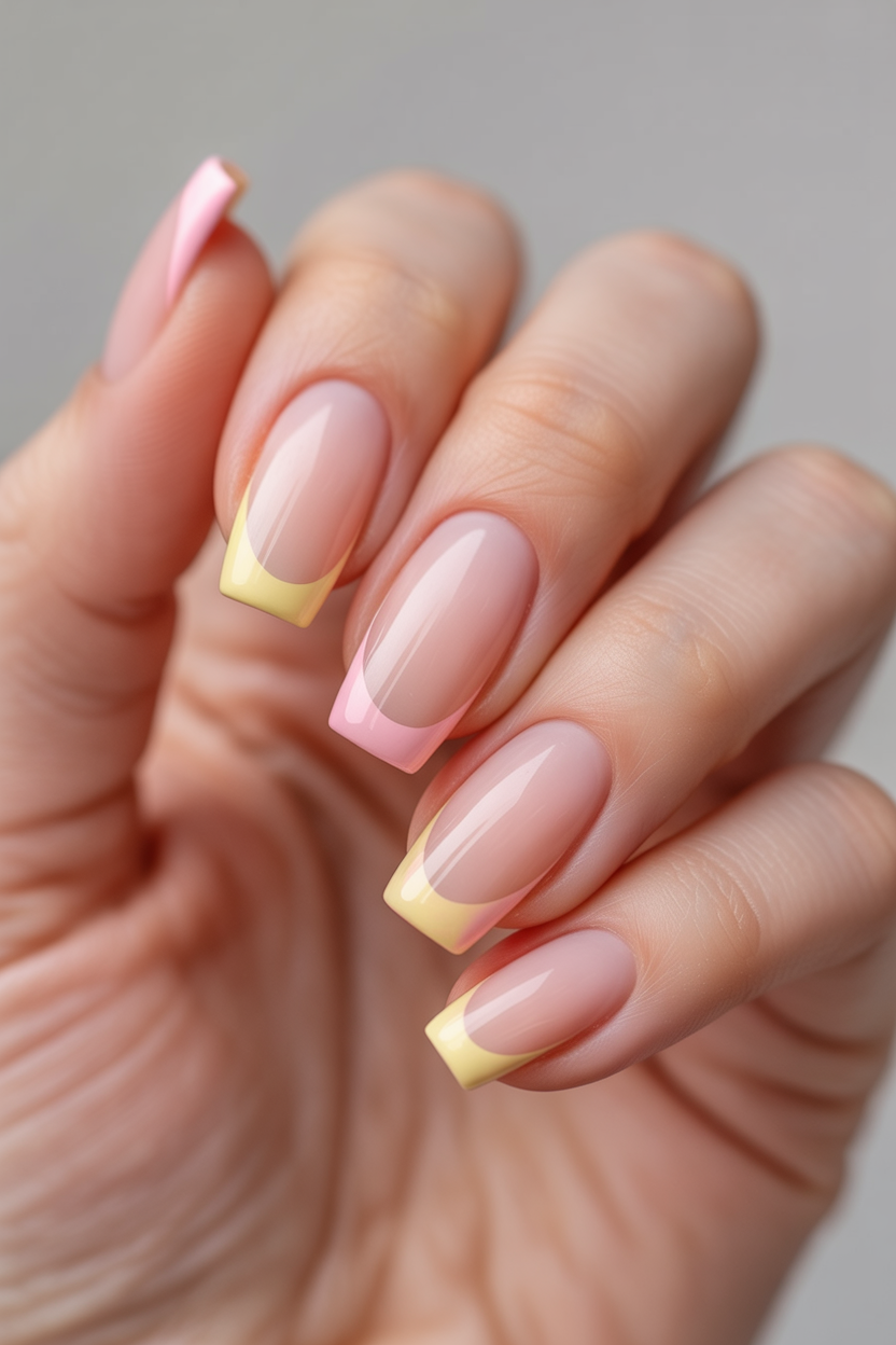 9. Playful Pastel French Square Tips