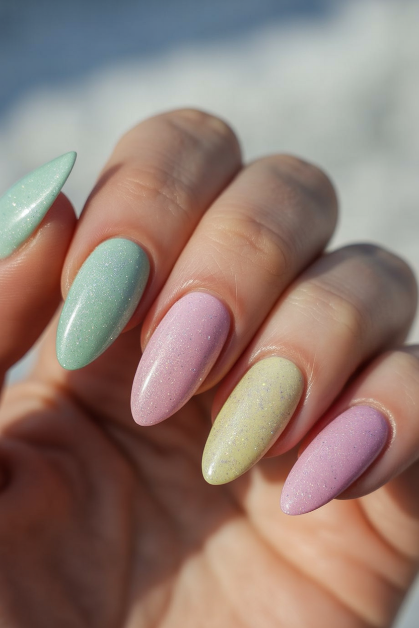 8. Shimmered Pastel Almond Elegance