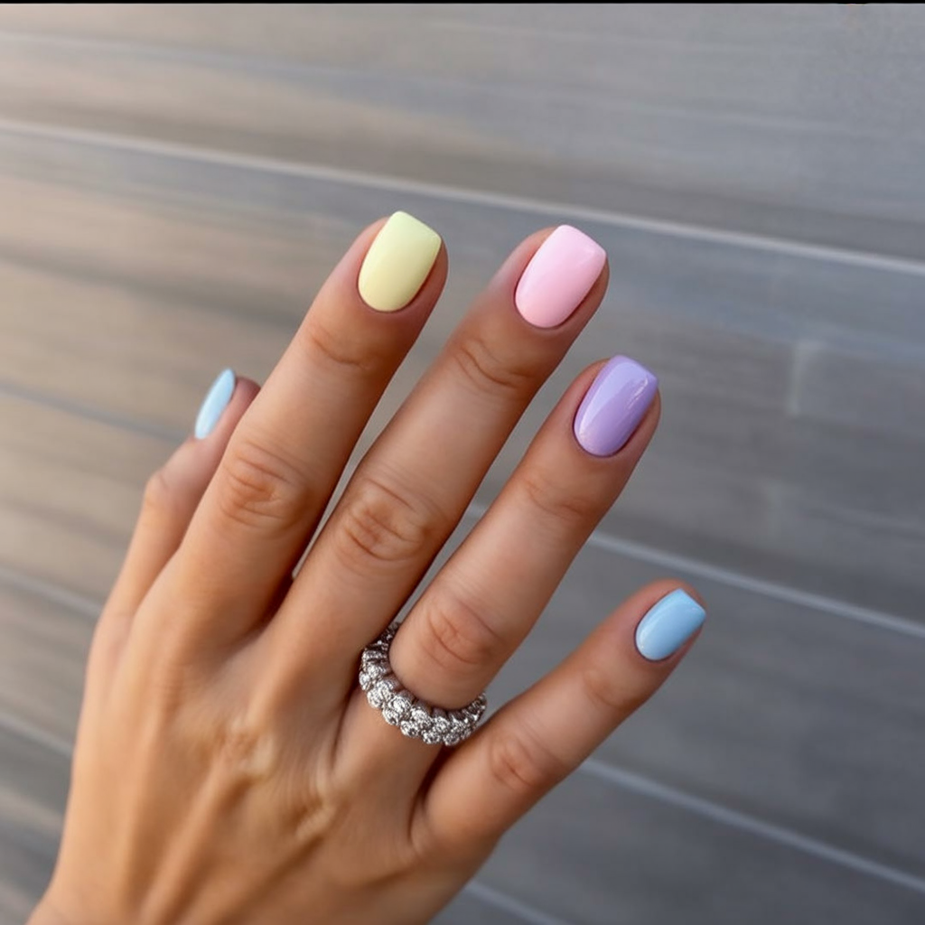 4. Minimal Pastel Mix on Short Nails