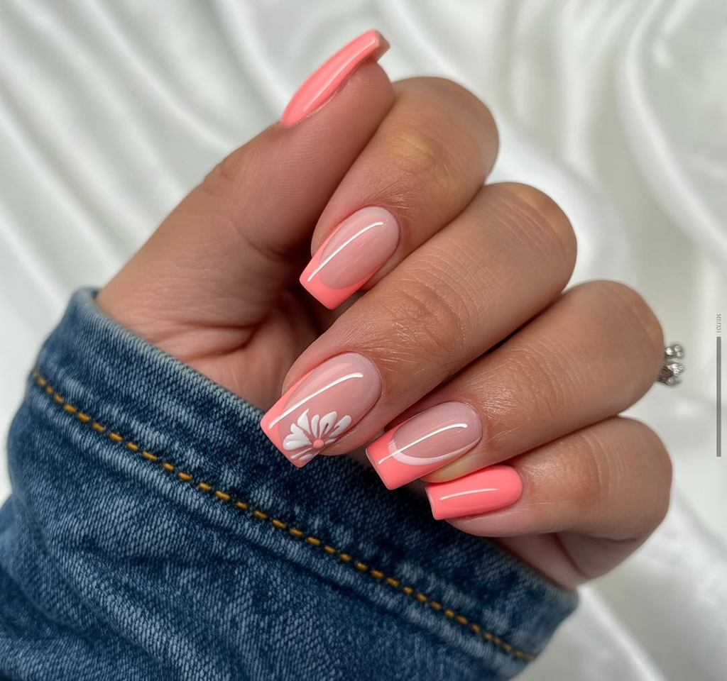 If you’re someone who enjoys color but prefers a balanced look, this design is a lovely choice. The square shape keeps it practical, and the floral detail adds just enough fun without overwhelming the nail. It’s ideal for spring and summer and pairs beautifully with neutral outfits or soft pastels.