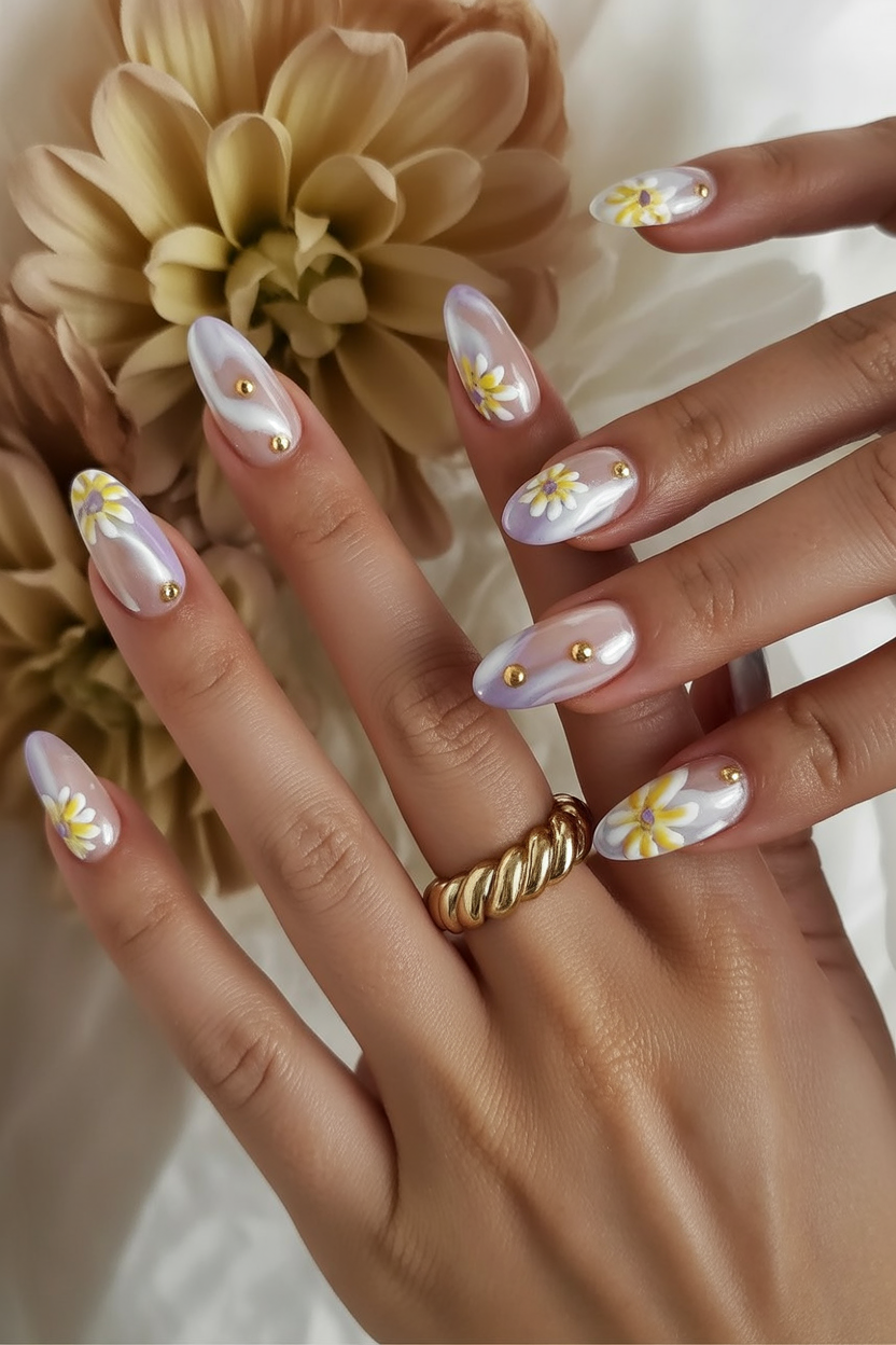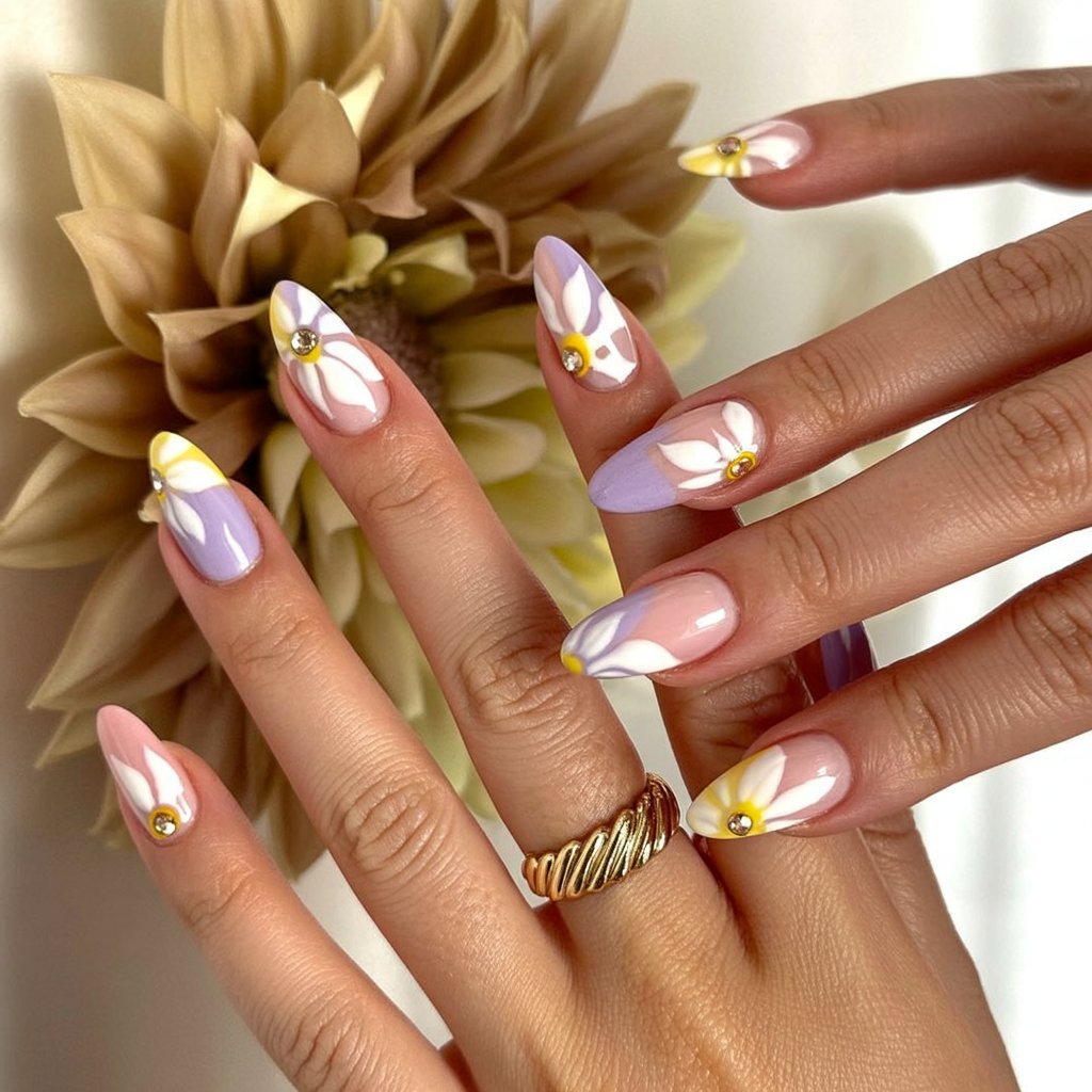 These nails feel soft, romantic, and quietly joyful. The pastel mix paired with hand-painted florals gives off a gentle, artistic vibe that feels thoughtful rather than trendy. There’s something calming about this design, like fresh flowers on the kitchen table. It’s delicate, feminine, and full of spring charm without feeling overdone.