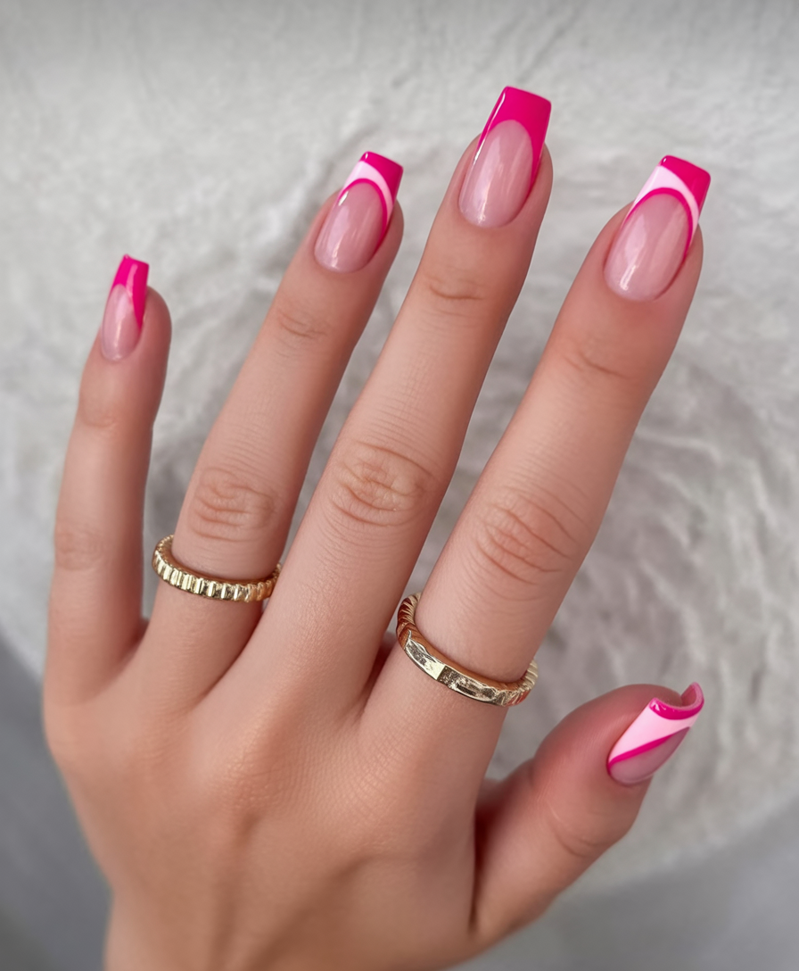 7. Hot Pink French Square with Graphic Curve