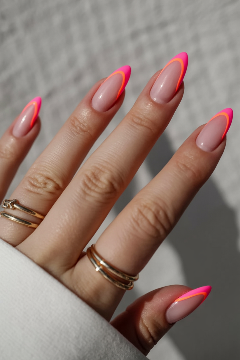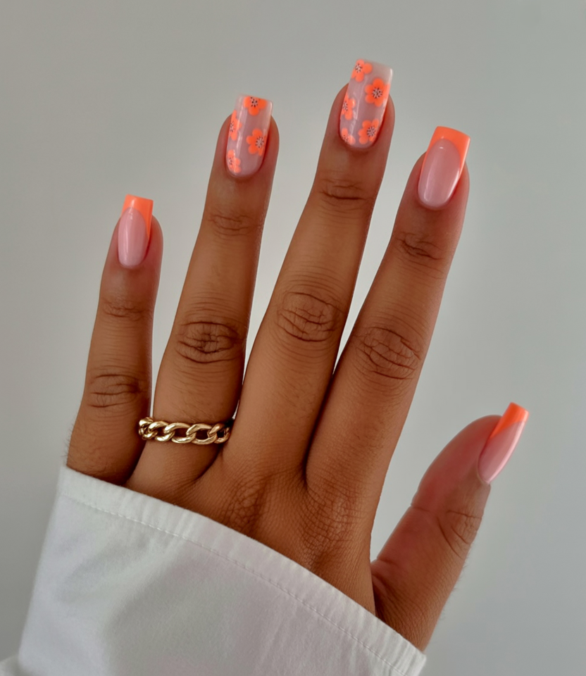 5. Neon Pink and Orange French Square
