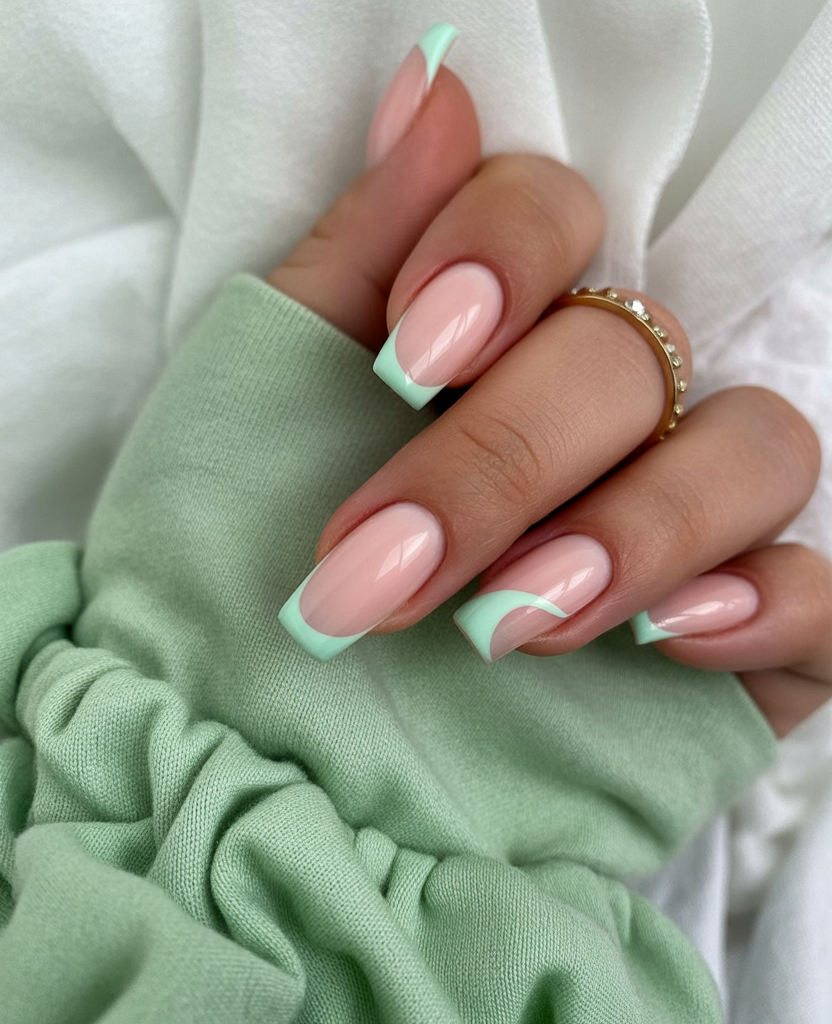 11. Soft Green French Square Nails