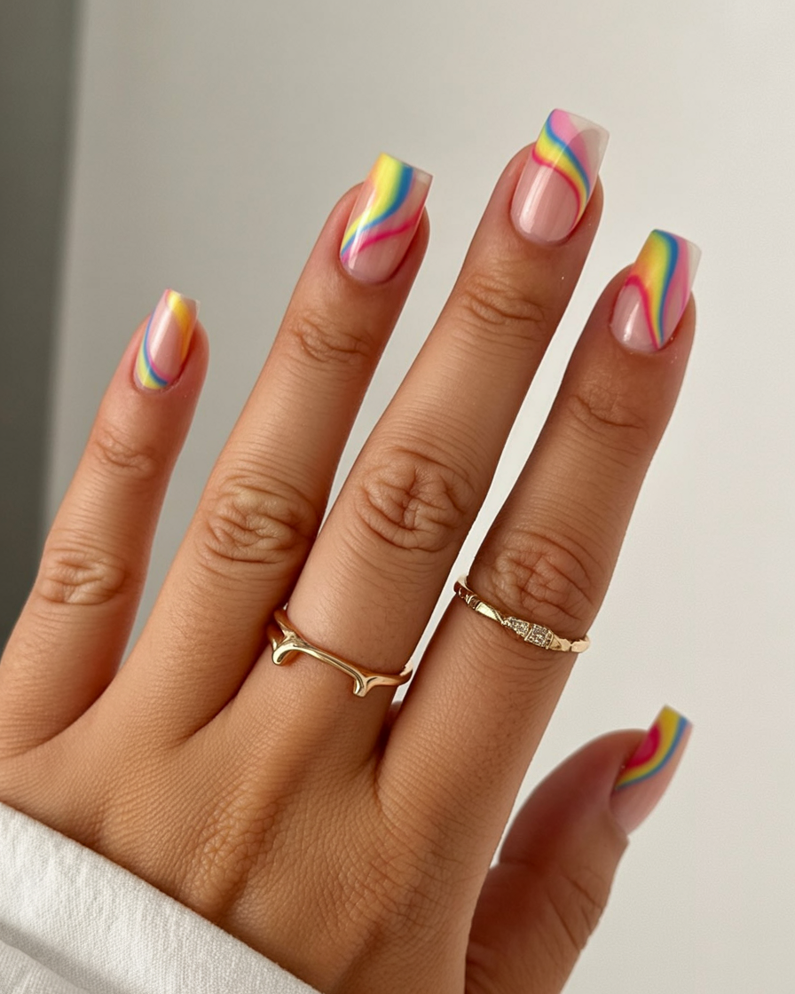 13. Rainbow Wave Square Nails