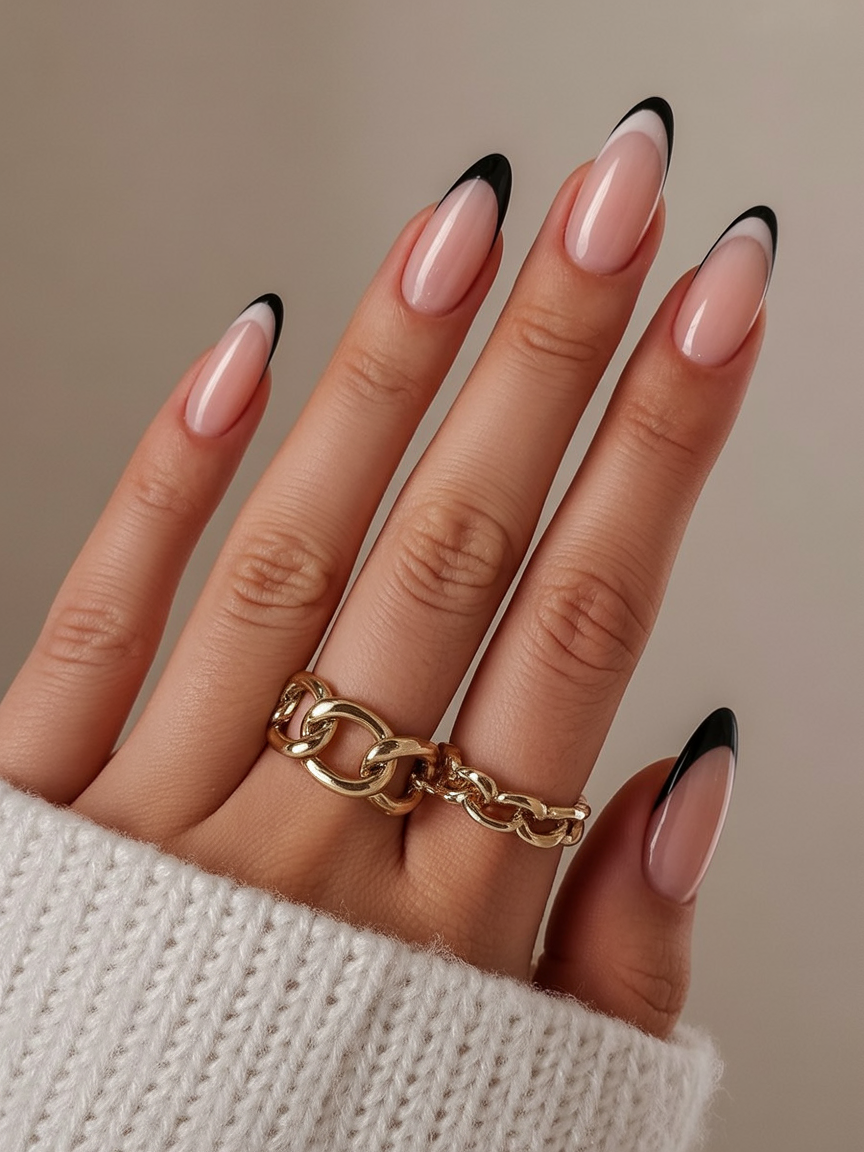 Nothing can be more alluringly stylish than black French tips on soothing pink. This style is timeless yet trendy and will make you look achievable and timeless at the same time. It is not too extreme and looks like the manicure that can immediately complement a plain outfit.