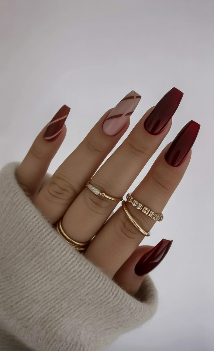 Flattering on square shaped nails and coffin nails, in particular, this design has an elegant edge that works well on long nails. As opposed to the simple reds, the geometric nude embellish makes it sturdy and unique aesthetically. Combine it with gold rings or a chunky knit to amp up the trendy contrast and embrace that 2025 trend that will mix minimal with bold.