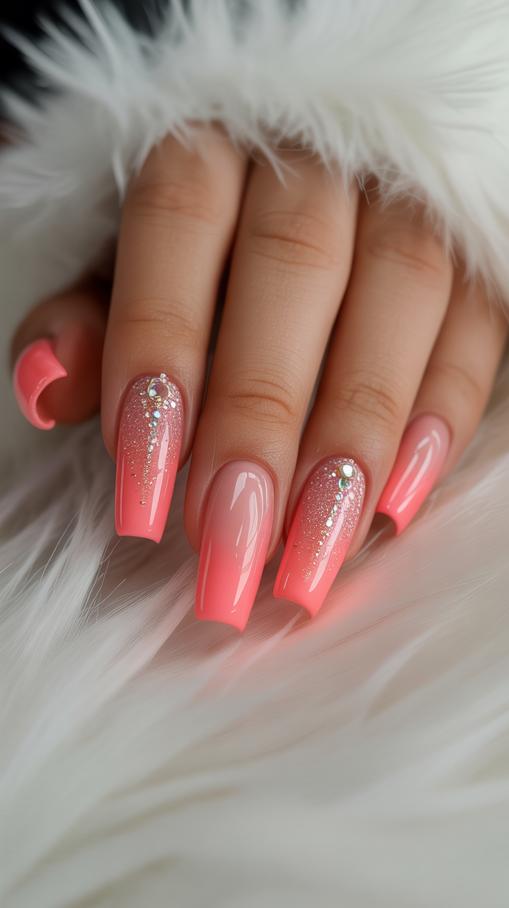 Medium to long square nails will benefit best in this design, and it looks beautiful on all skin tones with its warm and vibrant color. If you no longer feel the need of neutrals but are in need of something bold, yet reasonably wearable, this style comes in to the rescue. Its glitter and rhinestones are never too garish but add the fun element without being too much, which helps it become a 2025 winner among the ladies with a penchant toward color.