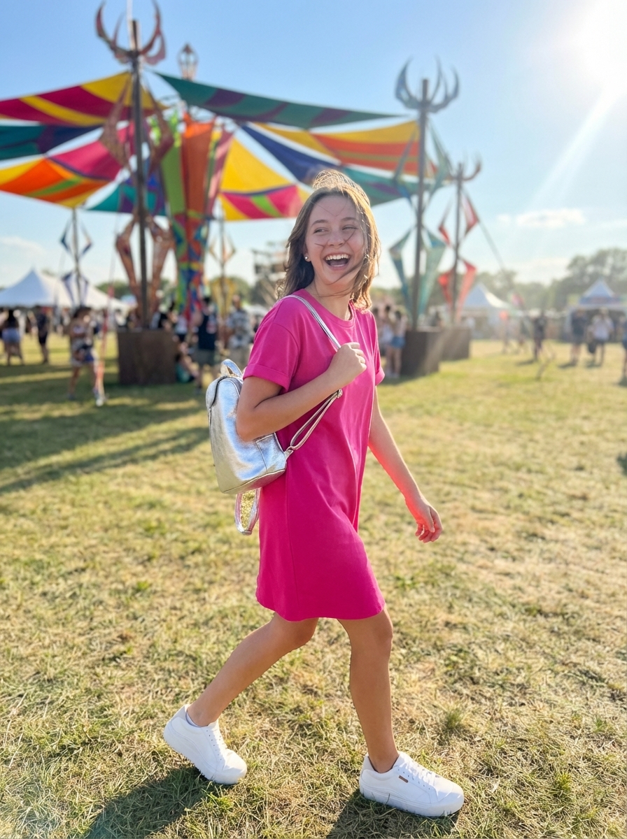 The white platform Michael Kors sneakers, priced at $63.20, tie the whole look together, offering a trendy touch while providing comfort for walking around camp. These faux leather and rubber shoes feel supportive, which is a big plus when you’re on your feet all day. This is a look that’s highly savable and shareable on Pinterest because it nails the creative, camp-ready aesthetic without trying too hard.