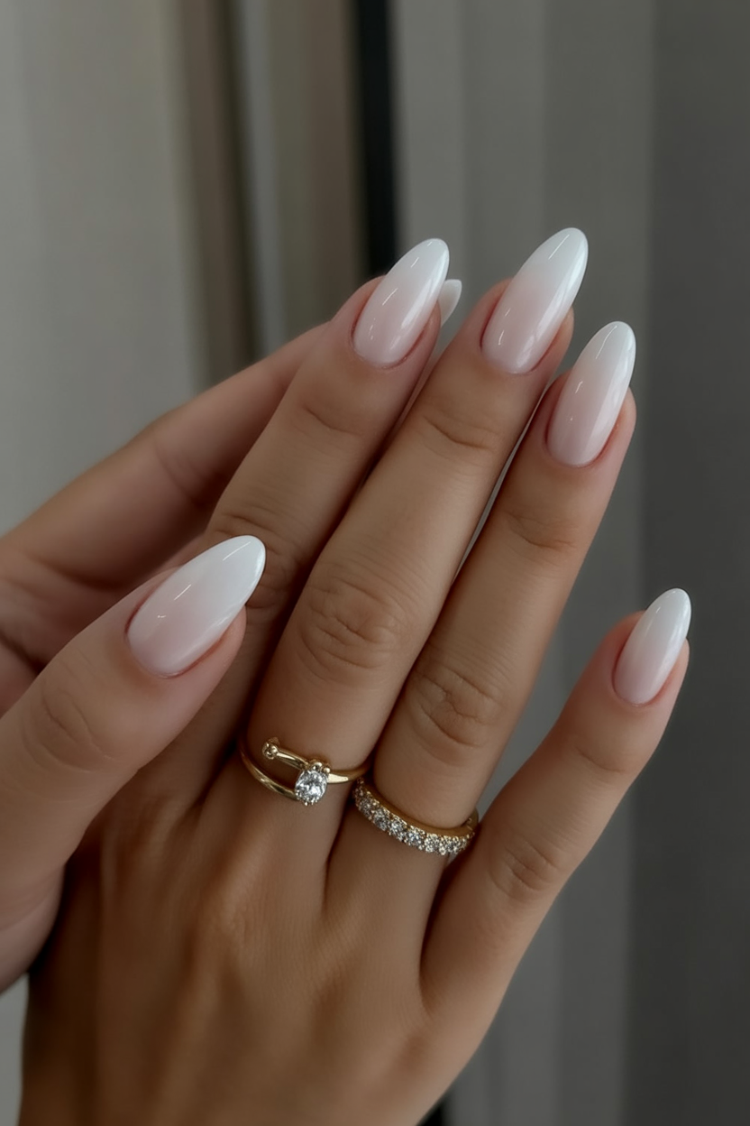 An almond nail in sheer white is something classically beautiful. It feels clean girl with a scooch of vanilla frosting. It is highly soft, serene, and elegant, and it is the nail-varnish equivalent of a plush cashmere cardigan.