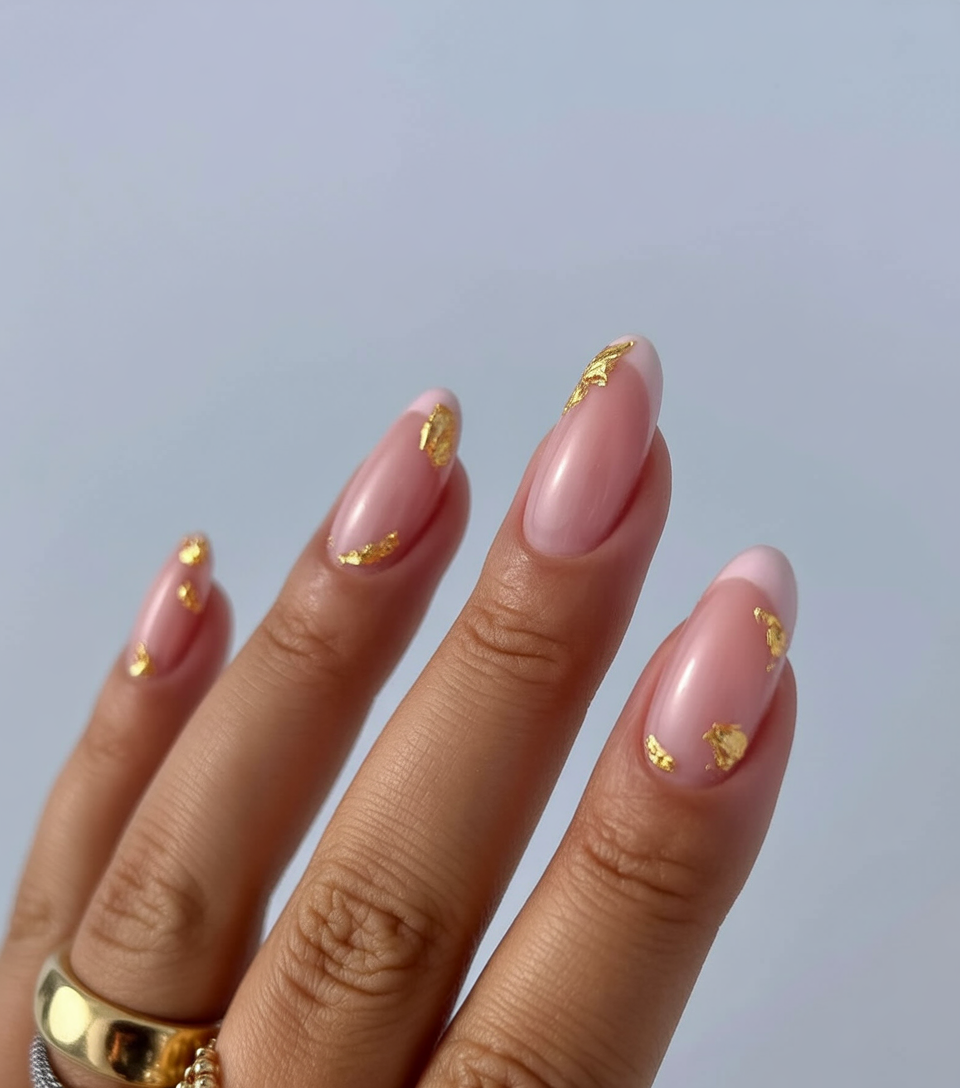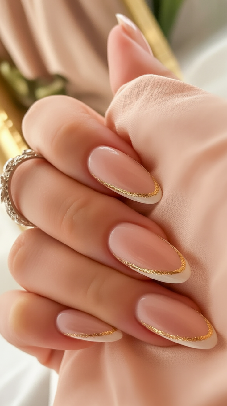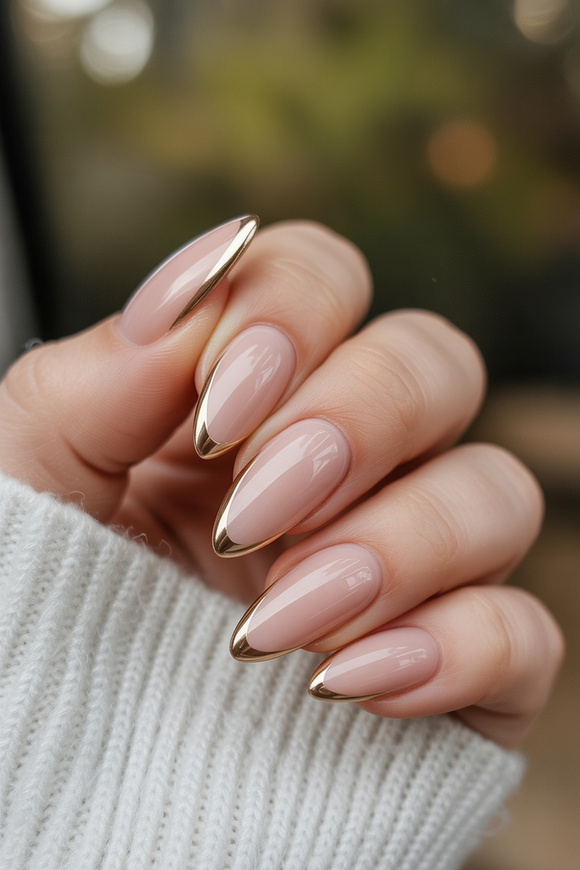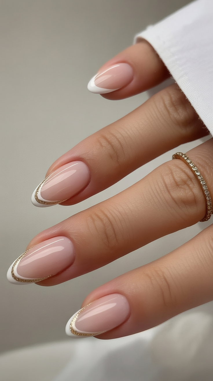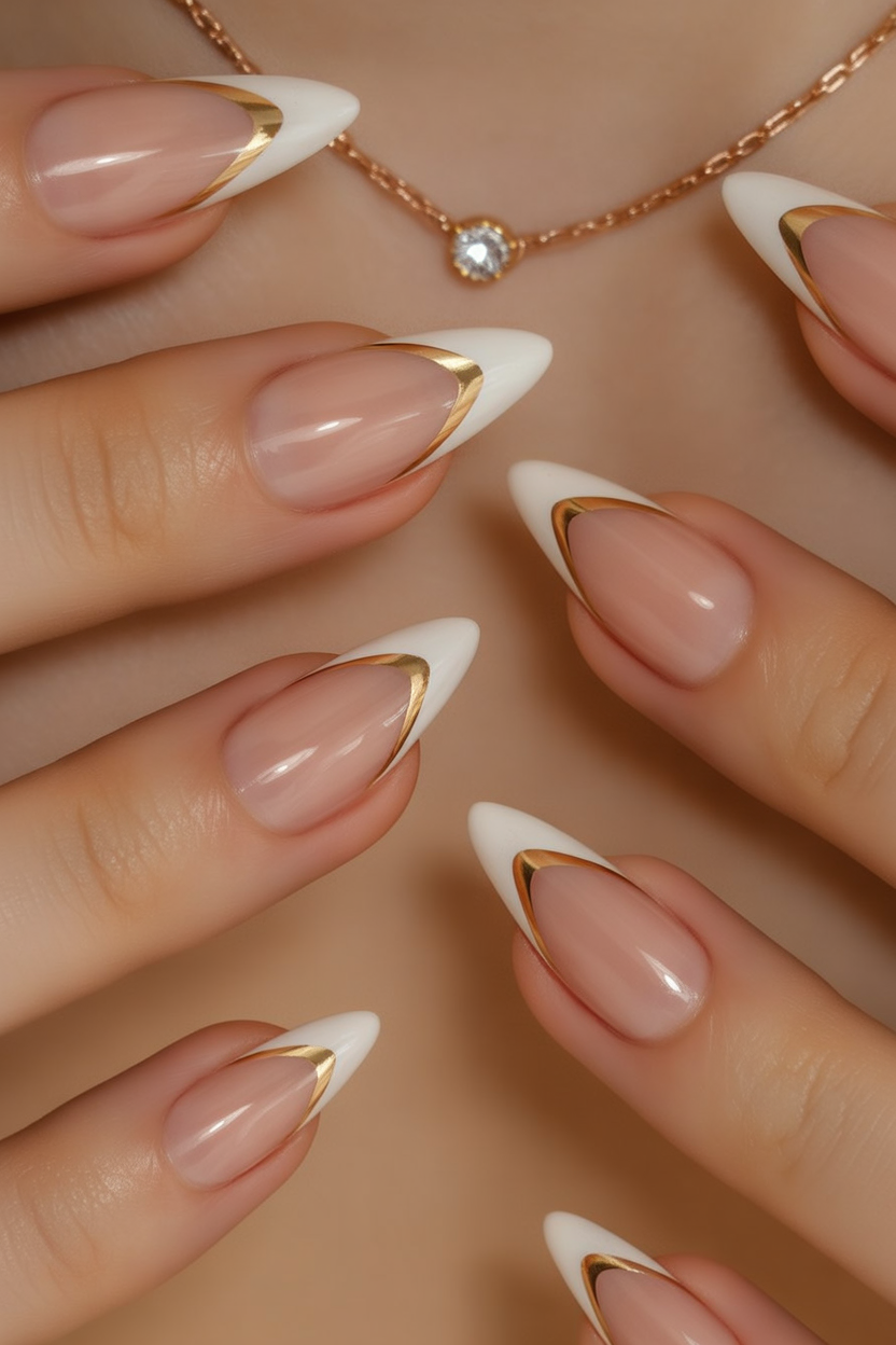 Classic French undergoes a 2025 transformation with the addition of a daring almond tip and a touch of feminine gold. These nails are fierce, feminine and meant to make a statement. They exude power and polish all at once.