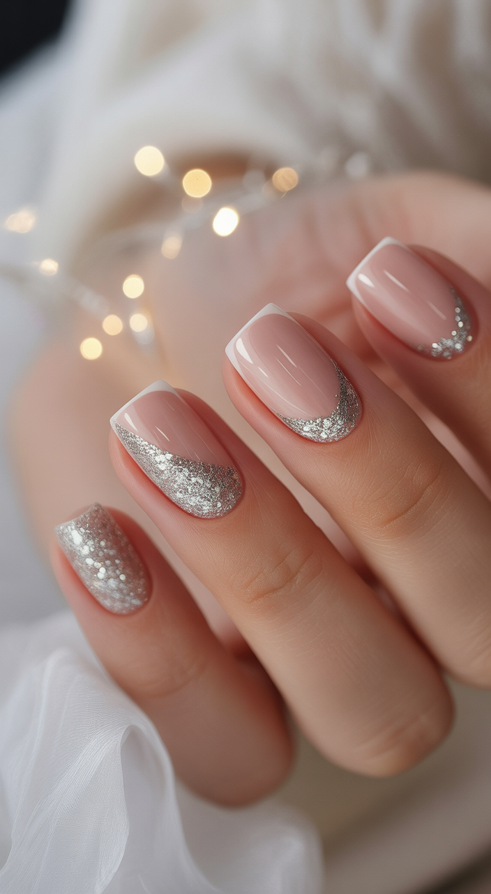 These nails are like your favorite champagne- bubbly, party time and so chic. The rose pink base is coupled with discrete white lines and glittering tips that make it a feminine look but not too precious. Such a style is the one to make you chuffed with your hands in traffic or during coffee break with the best mug.