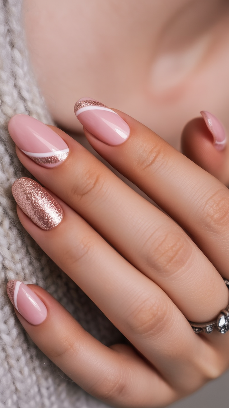 With medium to long almond-shaped nails, this is one of the best picks that would suit you especially on a special occasion or just to spice up your daily wear. The simple shine as well as strategic shine polish mix show versatility paired with the curved glitter edge which goes with any nail shape. It’s a stunning choice for early spring or a pretty date-night look.