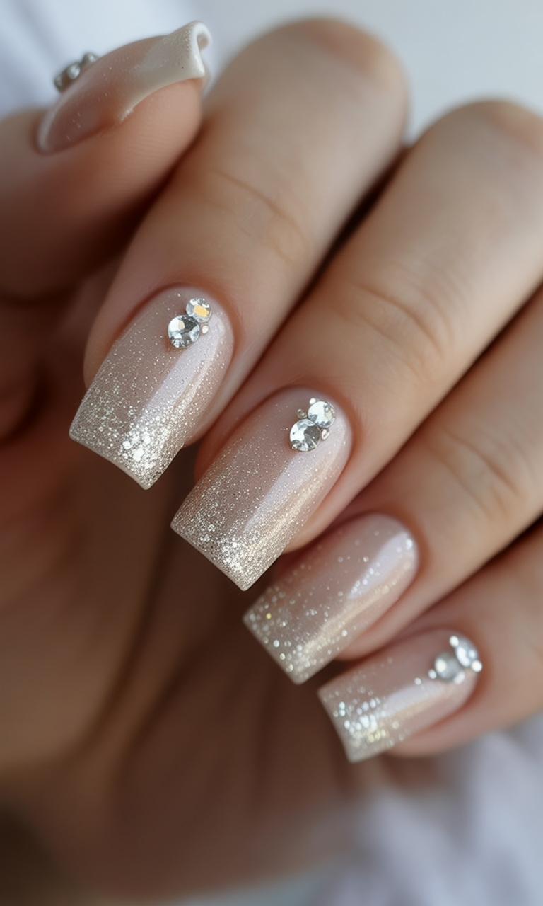 Delicate glitter and glamorous red carpet palette are found in this champagne glitter gradation. Add some rhinestones to the bottom and you have instant glam with hardly any other special occasion needed. It’s playful, romantic, and gives a little nod to old Hollywood.