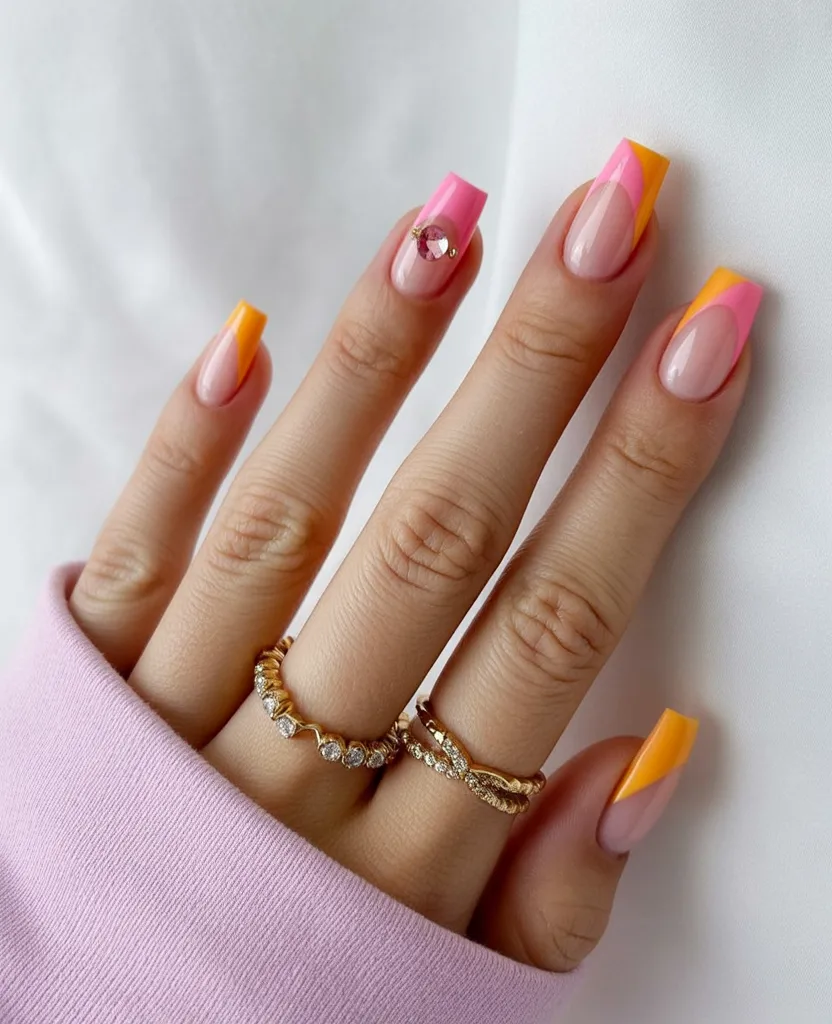 If you appreciate ideas that blend daring and practical, this is for you. The French-style tips keep the design neat while the Bright contrasting colors add fun. It’s great for Long nails where the color contrast really stands out, and is the perfect option if you want something that is bold and statement making, but is also still very sophisticated.