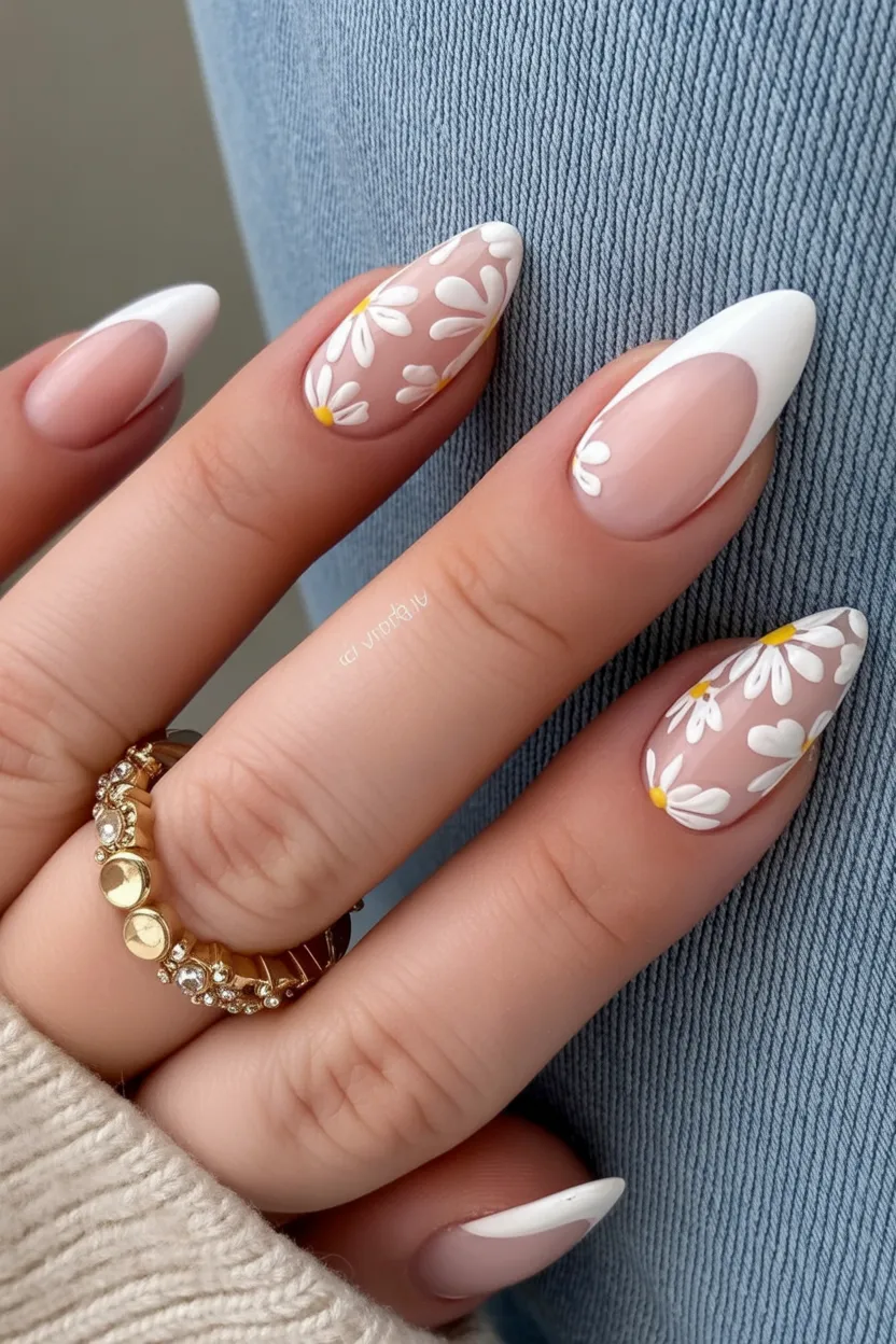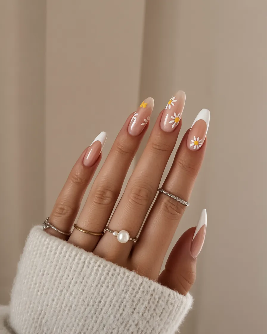 The timeless elegance and calm of this design cannot go unsaid. The daisy accents and clean French tips feel effortless. It is a design for every occasion, and the versatility is unmatched.