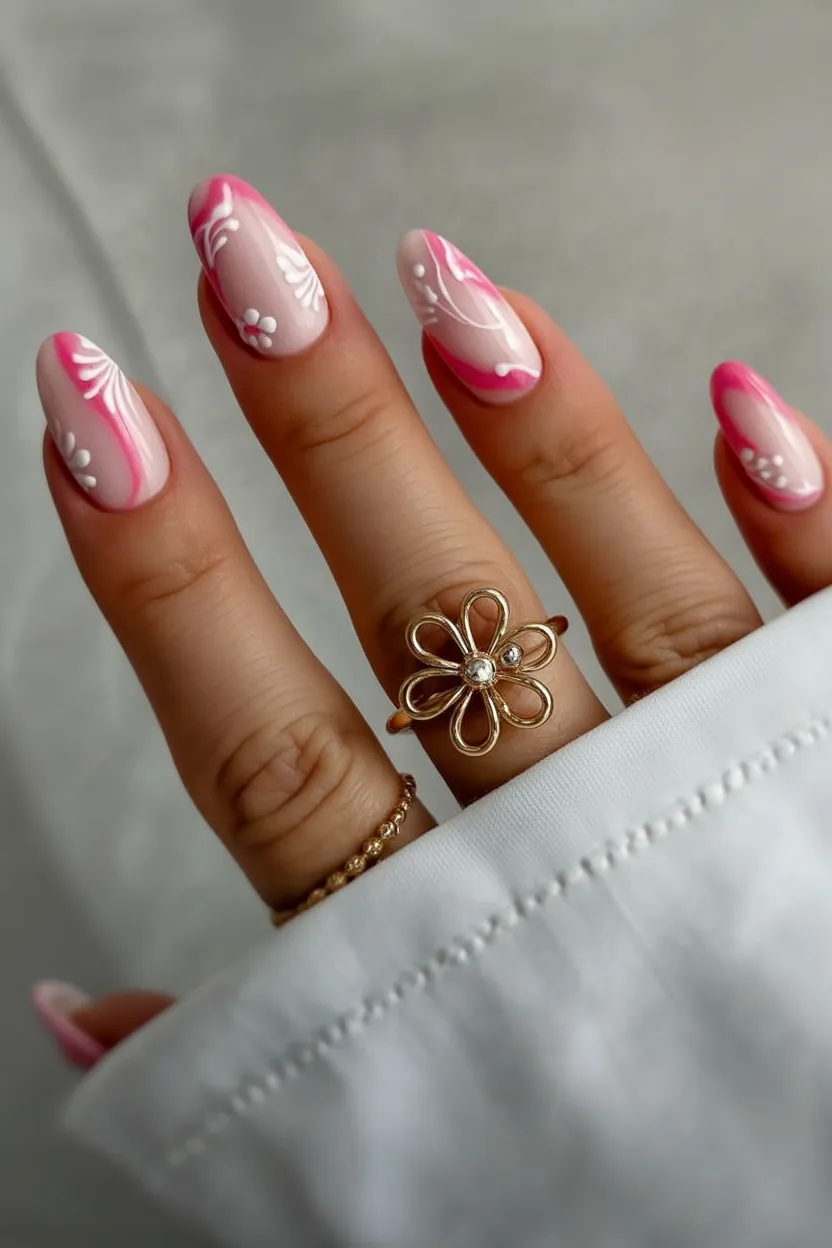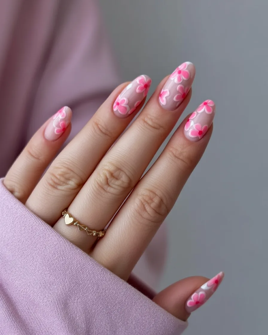 This design is ideal if you enjoy Designs flowers that don’t overwhelm. The almond shape keeps the look elegant, while the neutral-pink balance makes it wearable for everyday life. It works beautifully on both Short and Long nails, especially if you want something Cute that still feels polished and easy to maintain.