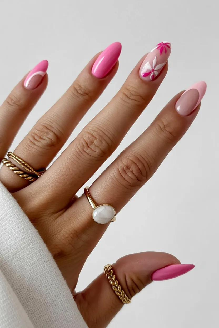 If you’re craving a little emotional boost, this style delivers it. Pink is known for its soft, flattering effect on all skin tones, and the almond shape keeps everything looking elegant rather than playful. It’s a great option if you want Designs flowers that still feel wearable day to day, especially if you enjoy expressing a gentle, Fun side through your nails.