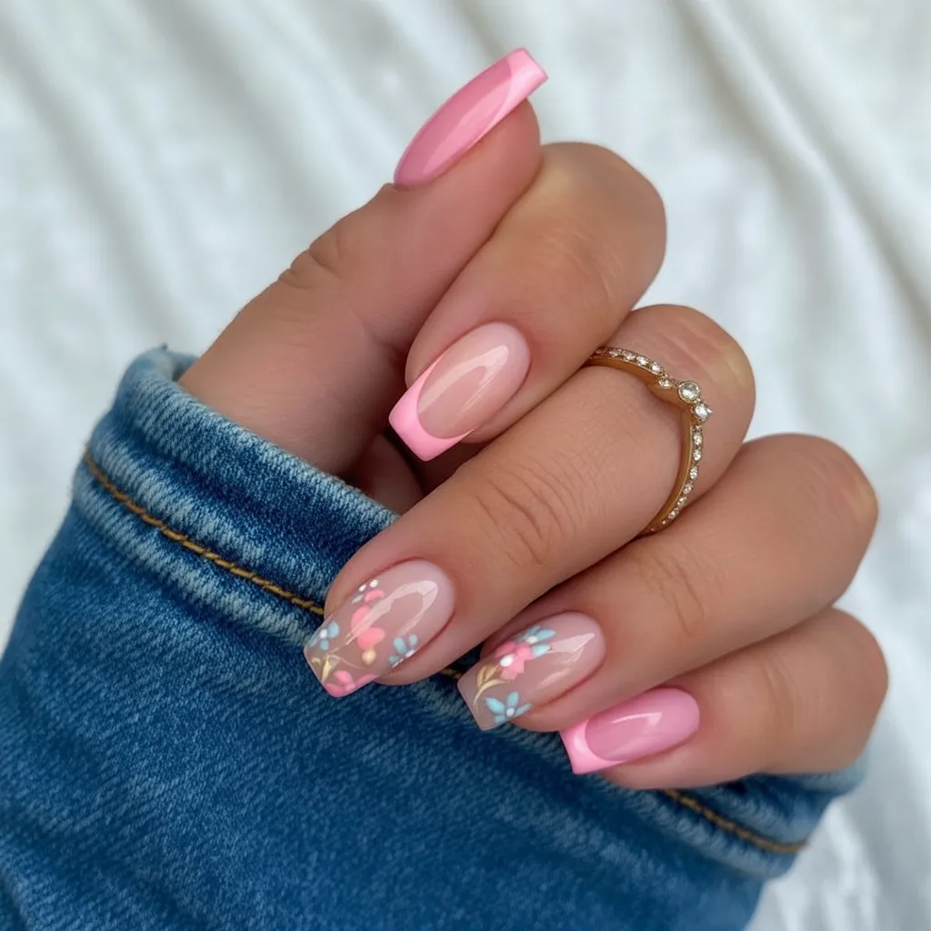 This design has a cheerful, feel-good energy that instantly lifts your mood. The Pink tones feel fresh and optimistic, while the tiny floral details add a sweet, personal touch. It’s Cute without being too precious — the kind of manicure that feels right for spring celebrations, casual lunches, or just because you want something pretty.