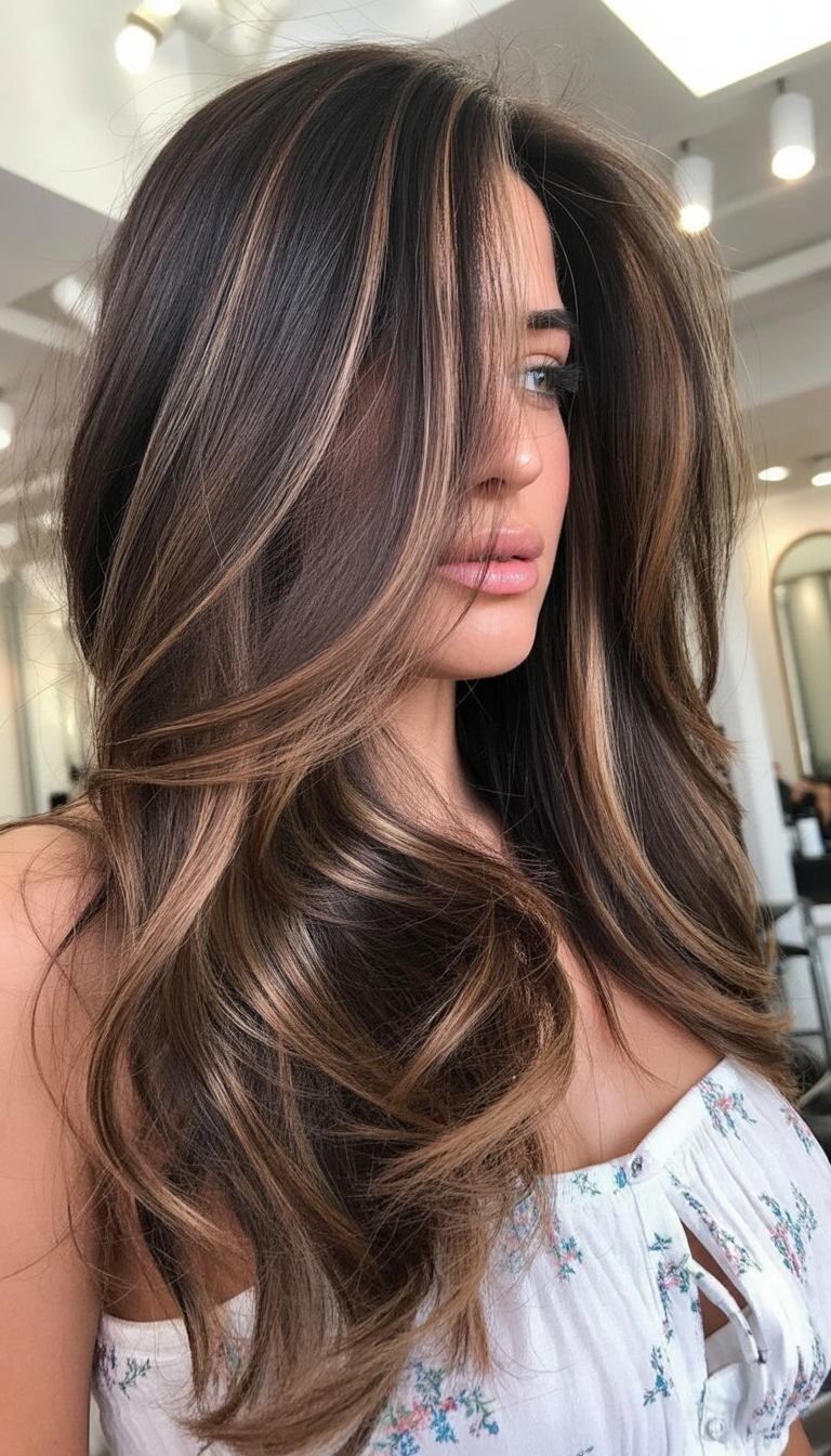What sets this apart is the balayage dark brown technique, which adds depth without harsh lines. It’s ideal for medium to thick hair and works beautifully with layered cuts that enhance volume. Compared to flat, single-tone brunettes, this version feels more alive and forgiving as it grows out.