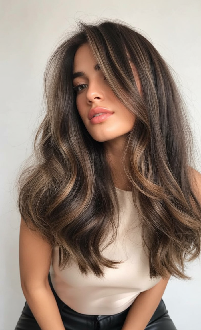 6. Voluminous Brunette Layers with Soft Contrast