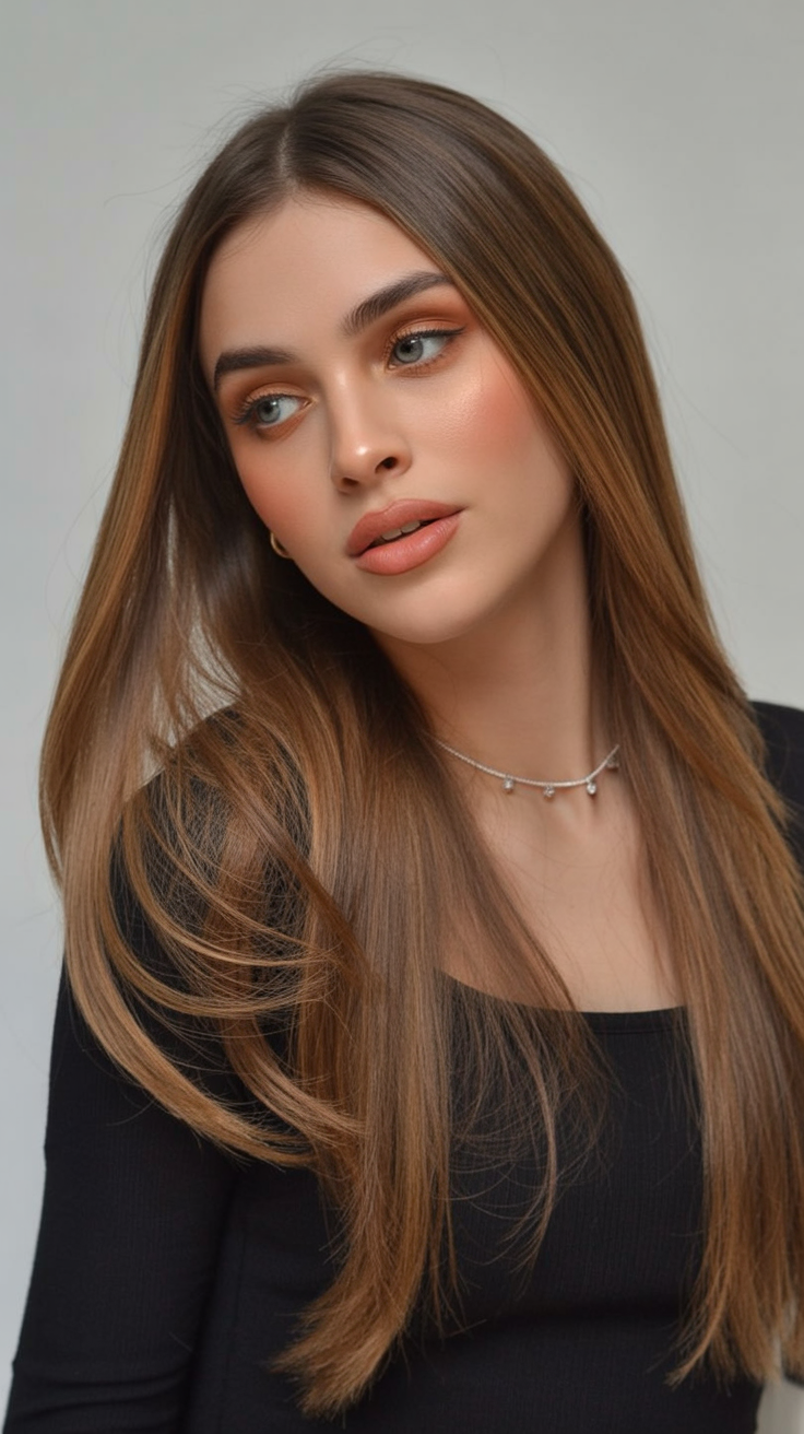 What sets this look apart is its simplicity. Compared to heavily layered or highly contrasted styles, this one leans into clean lines and natural color. It’s ideal for straight hair and women who love a polished appearance that works just as well for everyday wear as it does for special occasions.