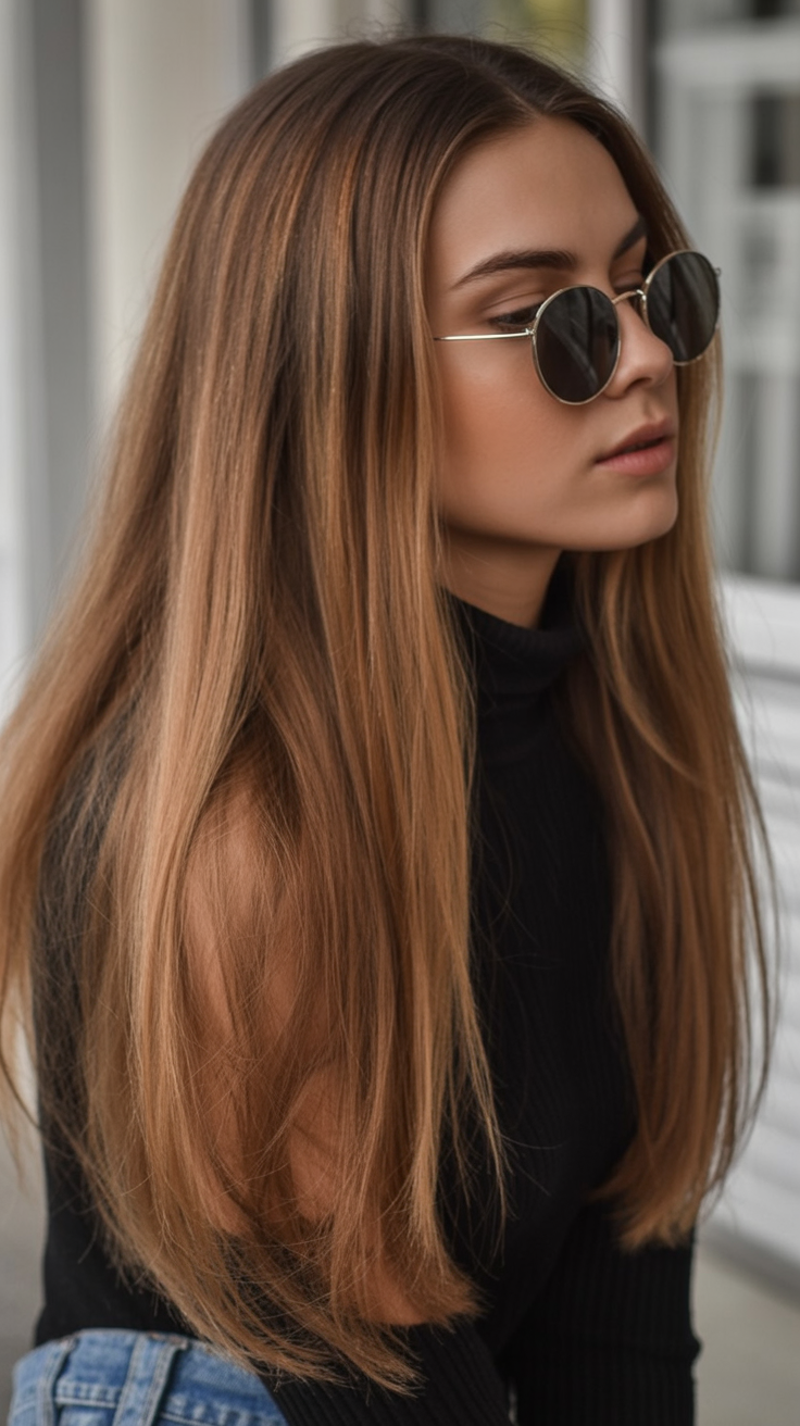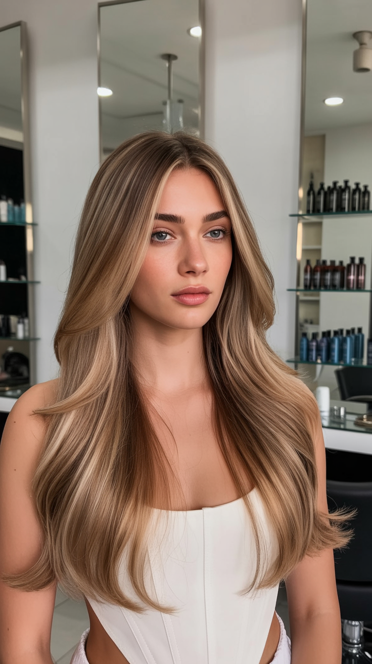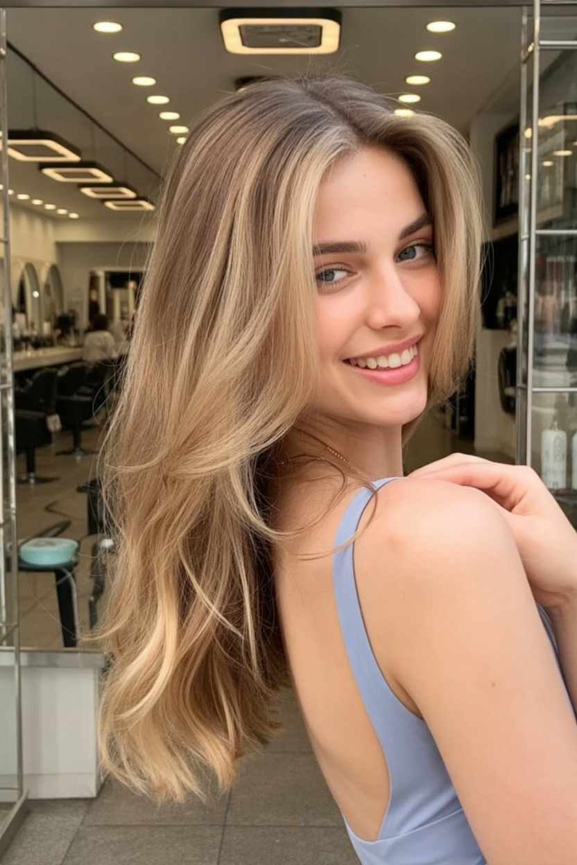 This style works beautifully for straight to softly wavy hair and is especially flattering if you like length but want movement. The balayage placement keeps the color natural and low-maintenance, while the warm-to-neutral blend complements fair skin and pale skin alike. A smooth blowout or loose waves both show off the dimension beautifully.