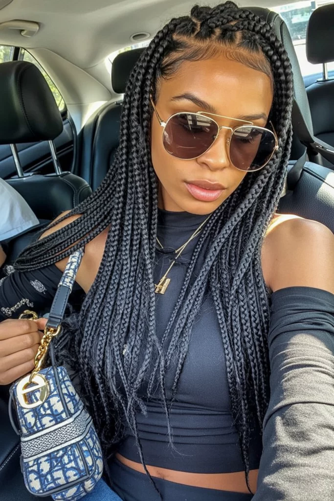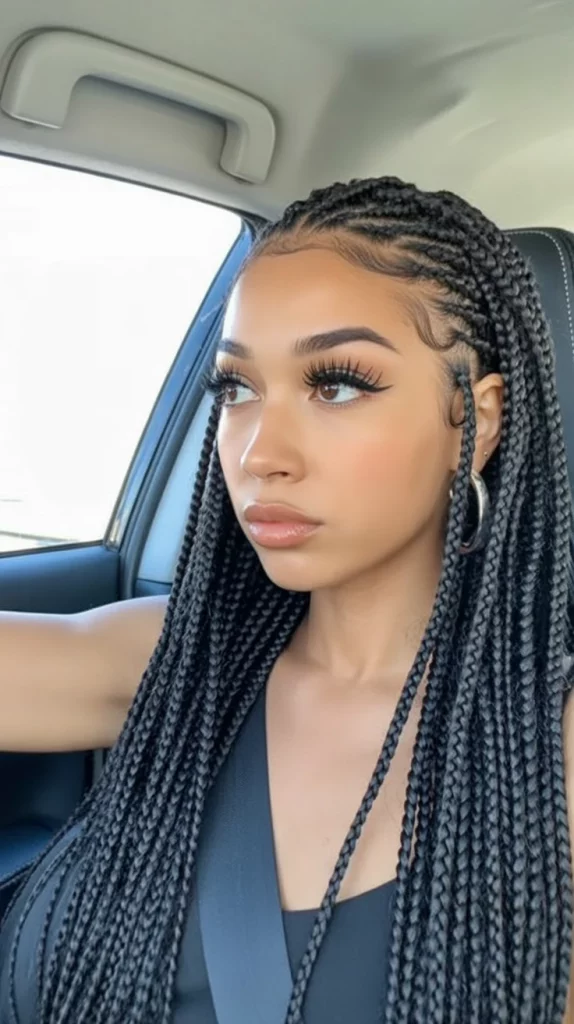 Talk about fierce and focused — these jet black braids are giving grown woman energy in the best way. The sleekness, the symmetry, the hint of baby hair action — it’s clean and powerful. Ideal for the days when you just want your hair to show up and do all the talking.