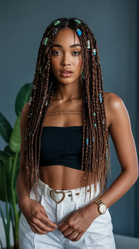 What makes this look sing is the freedom to personalize it. Beads, wraps, pops of color — it’s all fair game. Works best with medium-density hair, and adding a leave-in conditioner every few days will keep the ends shiny and soft.