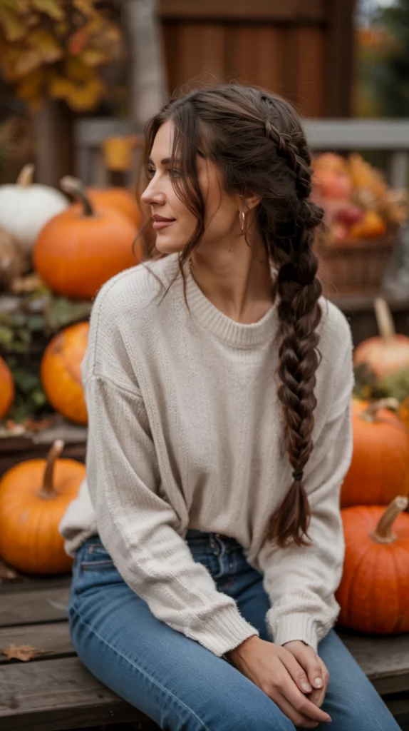 There’s just something irresistible about a loose side braid for autumn — it feels cozy, relaxed, and just a bit romantic. This style pairs beautifully with chunky sweaters and crisp fall mornings spent strolling farmers markets. The soft face-framing tendrils add a feminine touch, while the braid itself brings out that effortless charm we all crave during sweater weather.